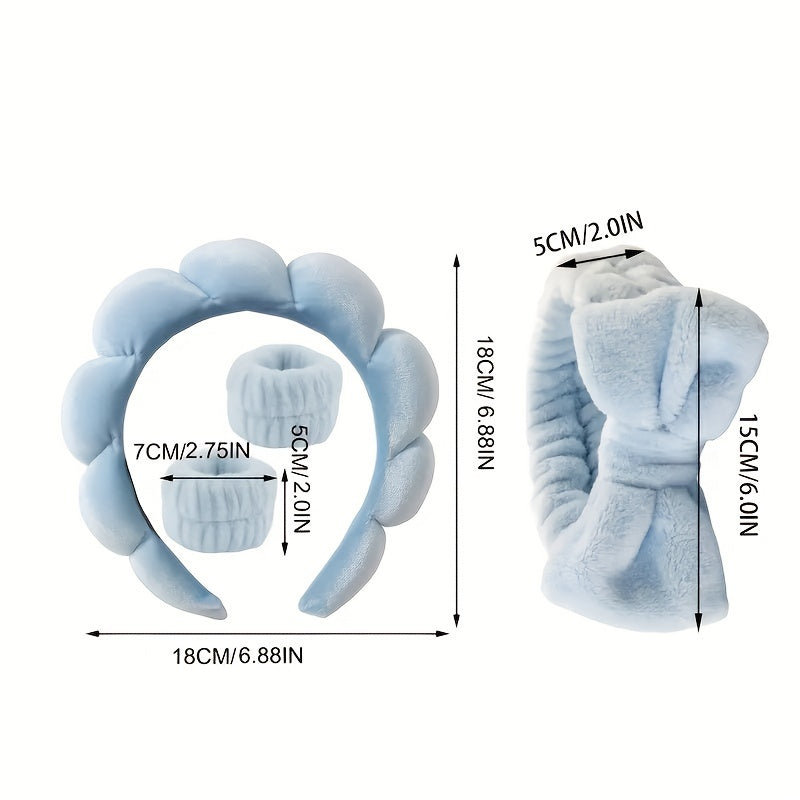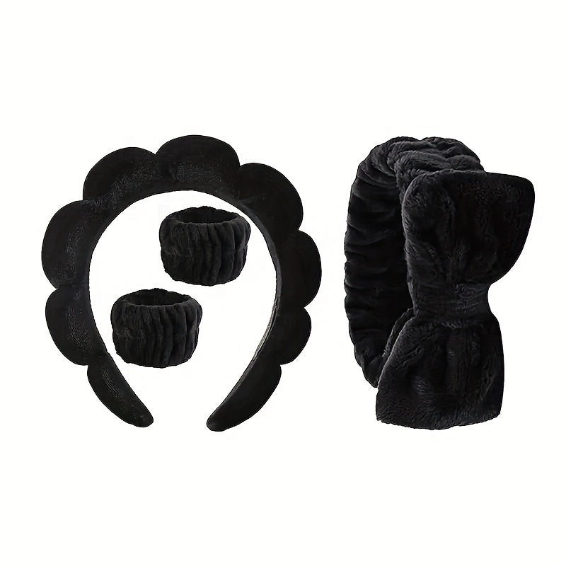 Set of 4 Women's Skincare and Hair Accessories Including Bow Headband Spa Head Hoop and Wristbands