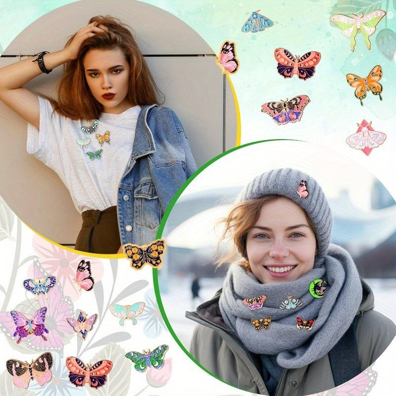 Set of 20 Black Butterfly Enamel Pins for Backpacks and Lapels, Cute Jewelry Gift