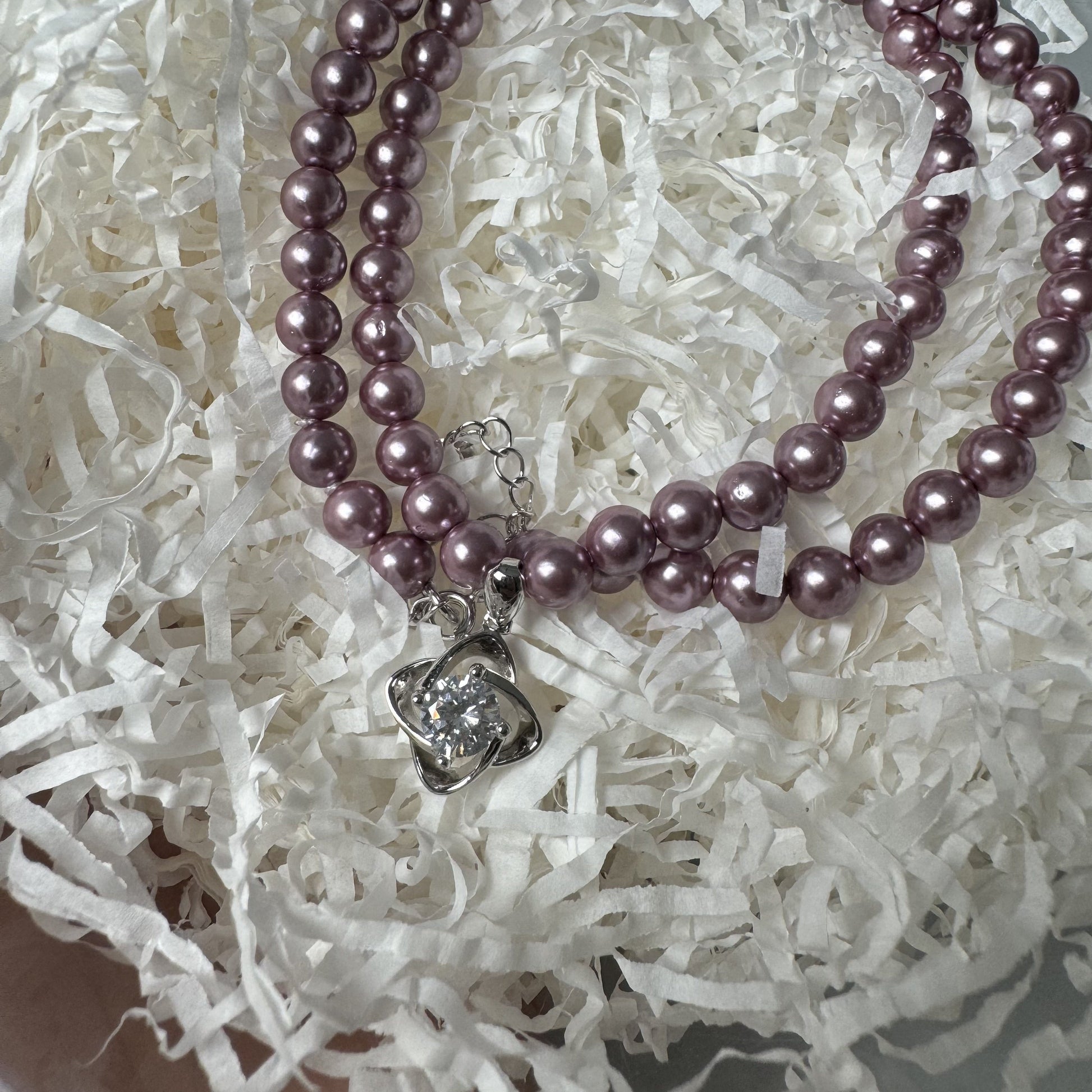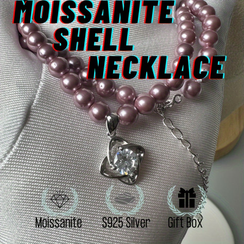 Purple Shell Pearl Necklace with Clover Pendant and Zirconia in 18K Gold Plated S925 Silver for Women