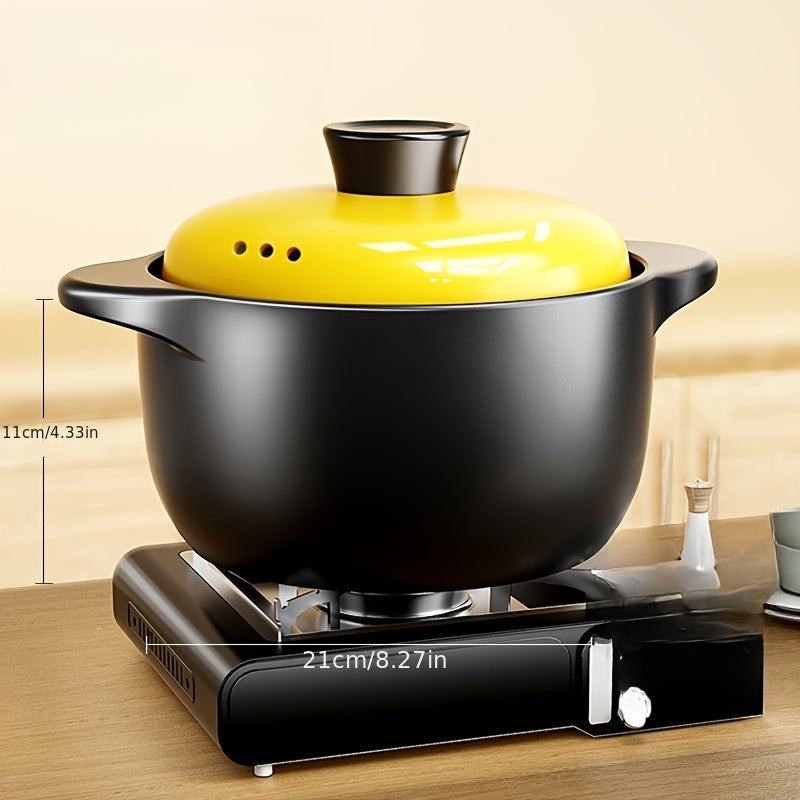 Black 5L Ceramic Stockpot with Yellow Lid for Stews Soups and Roasts