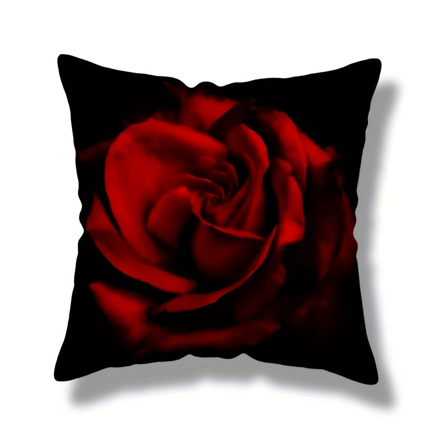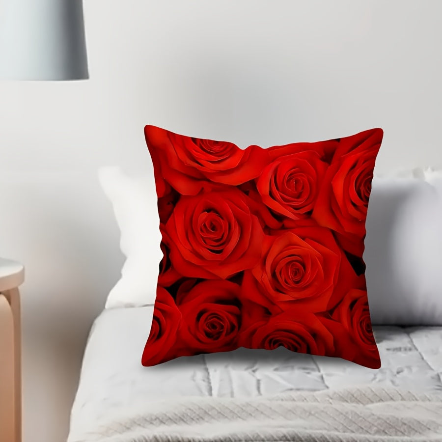 Red Rose Printed Throw Pillow Cover 44.96cm x 44.96cm Floral Cushion Cover for Valentine's Day and Wedding