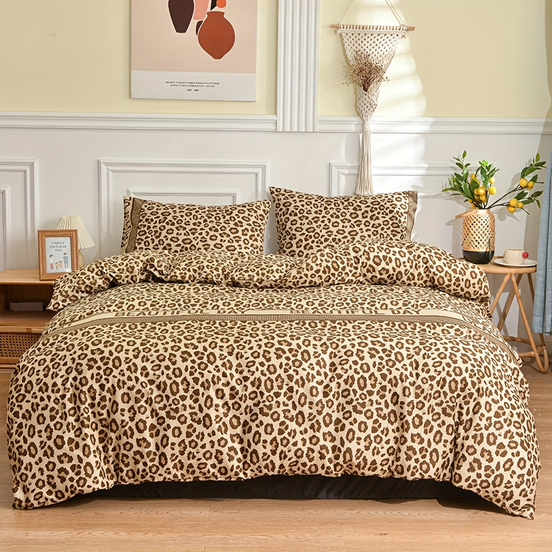 Leopard Print Duvet Cover Set with 2 Pillowcases for Bedroom and Guest Room