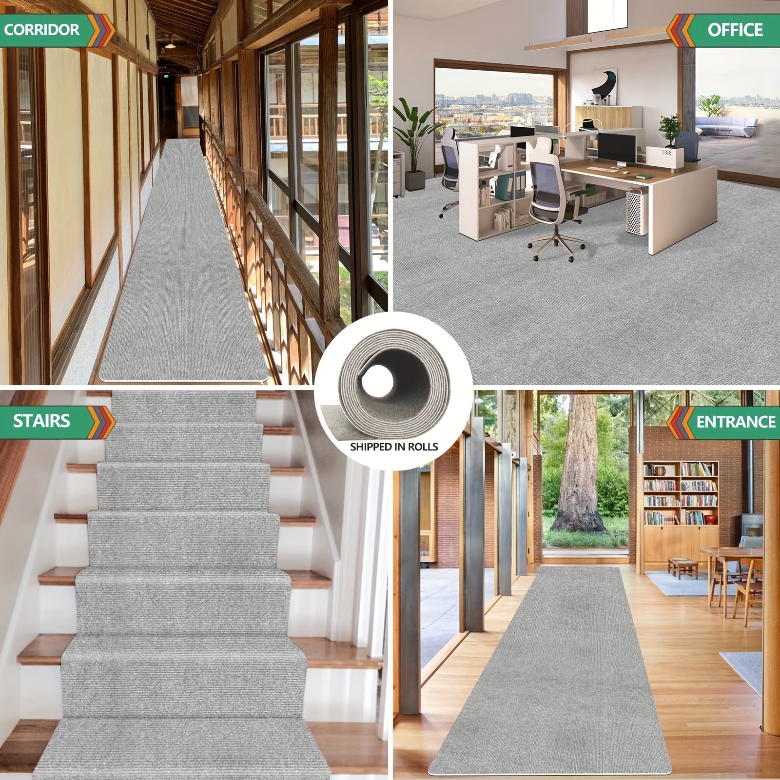Dark Gray Striped Runner Mat Non-Slip Stain-Resistant Machine Washable