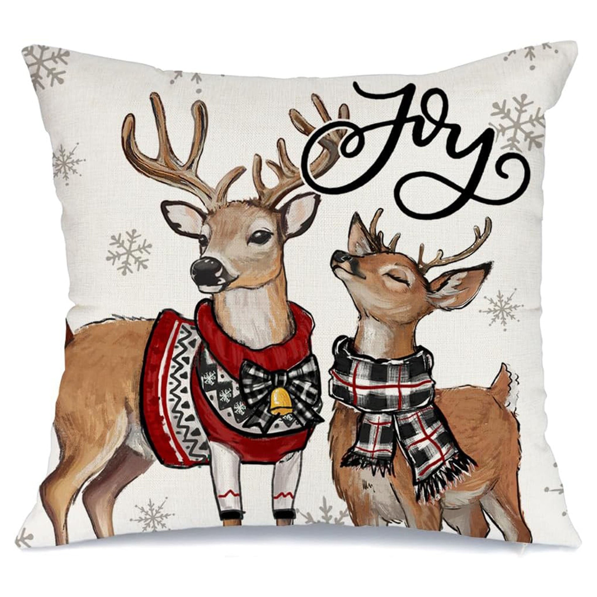 Linen Throw Pillow Cover Reindeer Snowflake Festive Woven Fabric Machine Washable