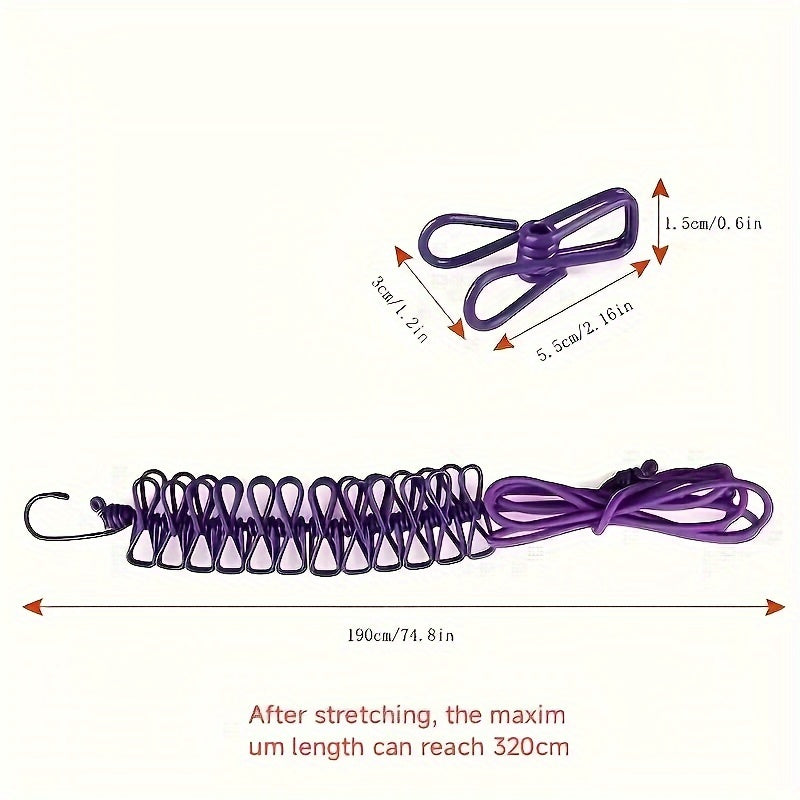 Adjustable Portable Travel Clothesline with 12 Clips Retractable Indoor Outdoor
