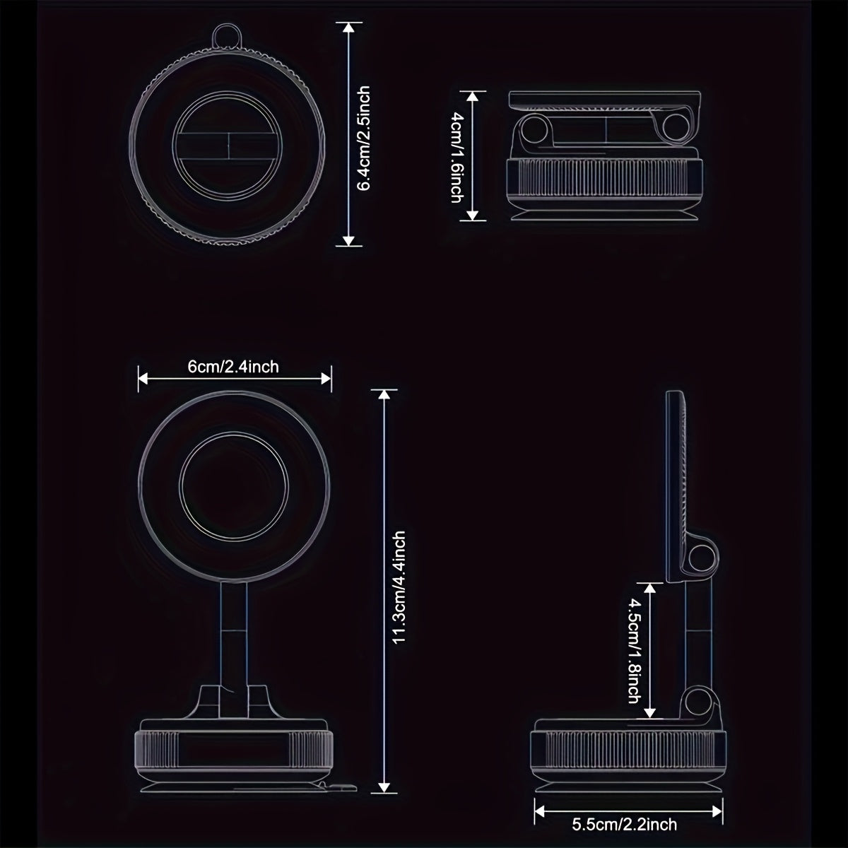 Adjustable Foldable Magnetic Phone Holder ABS Round Mount for Dashboard