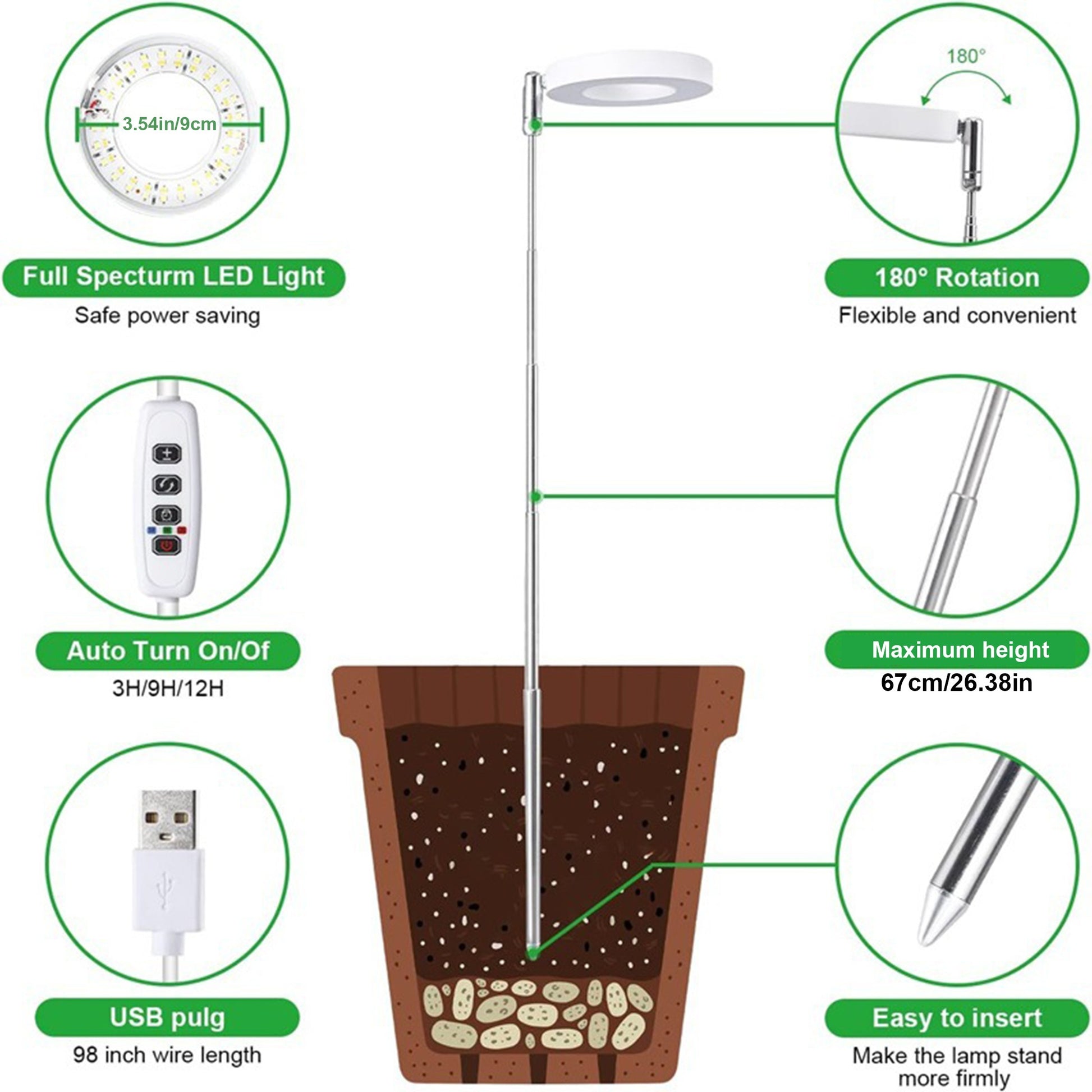 Adjustable Full Spectrum LED Plant Grow Light with Timer and USB Power for Indoor Plants
