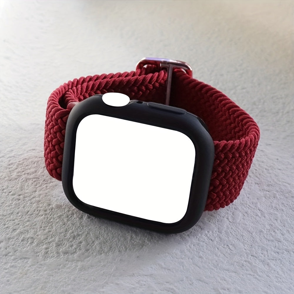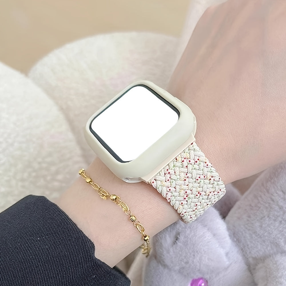 Adjustable Polyamide Watch Band Set with Breathable Elastic Woven Straps and Silicone Case for Apple Watch 38-49mm