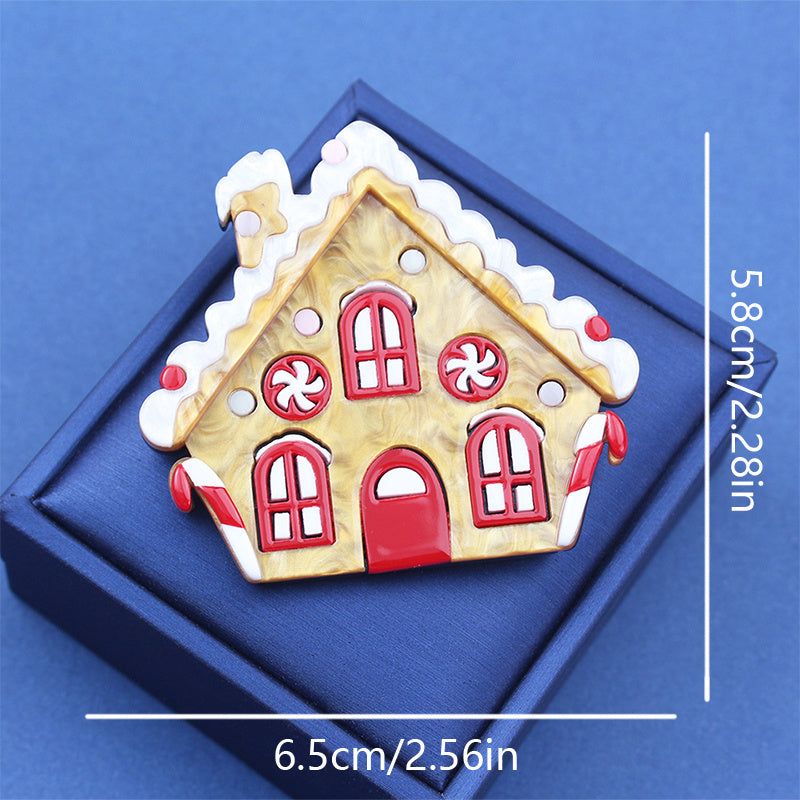 Acrylic Gingerbread House Brooch Reindeer Shape Festive Autumn Winter Accessory