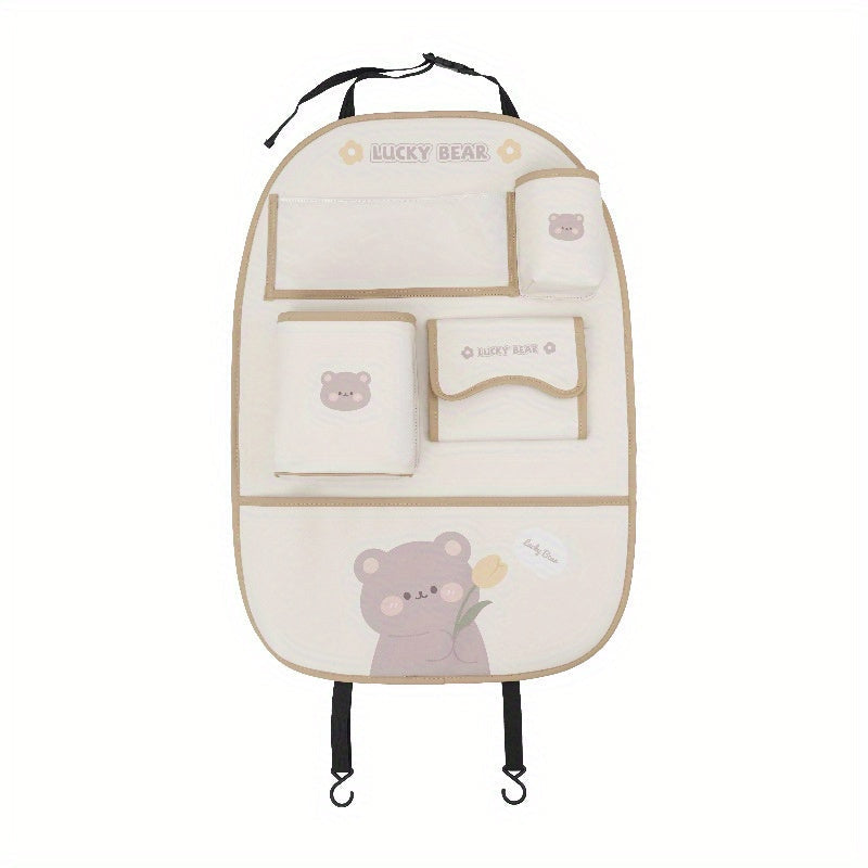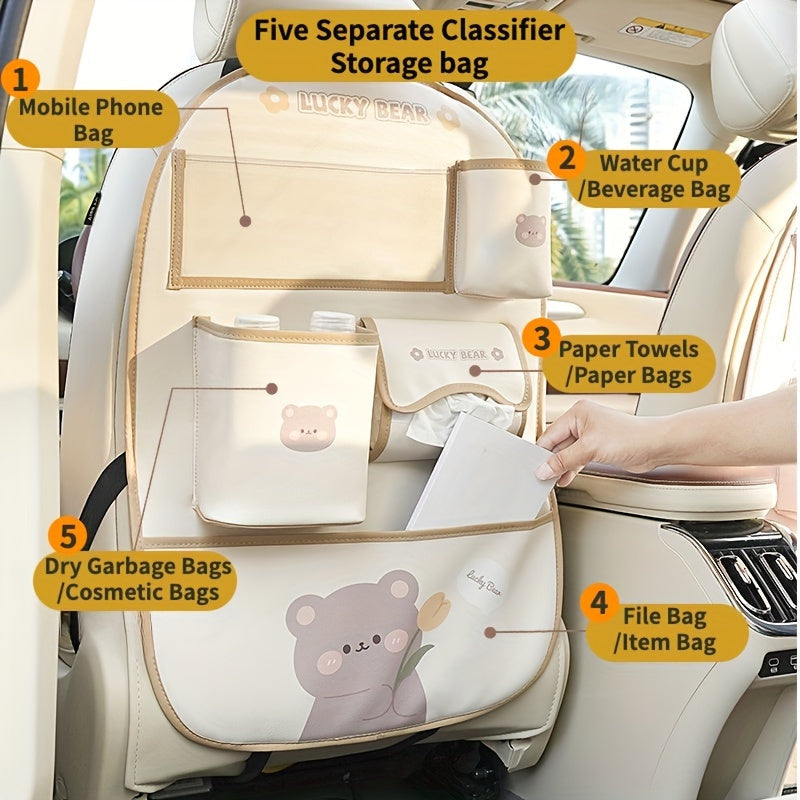 Car Organizer with Trash Bin Tissue Holder Cup and Phone Slots Faux Leather