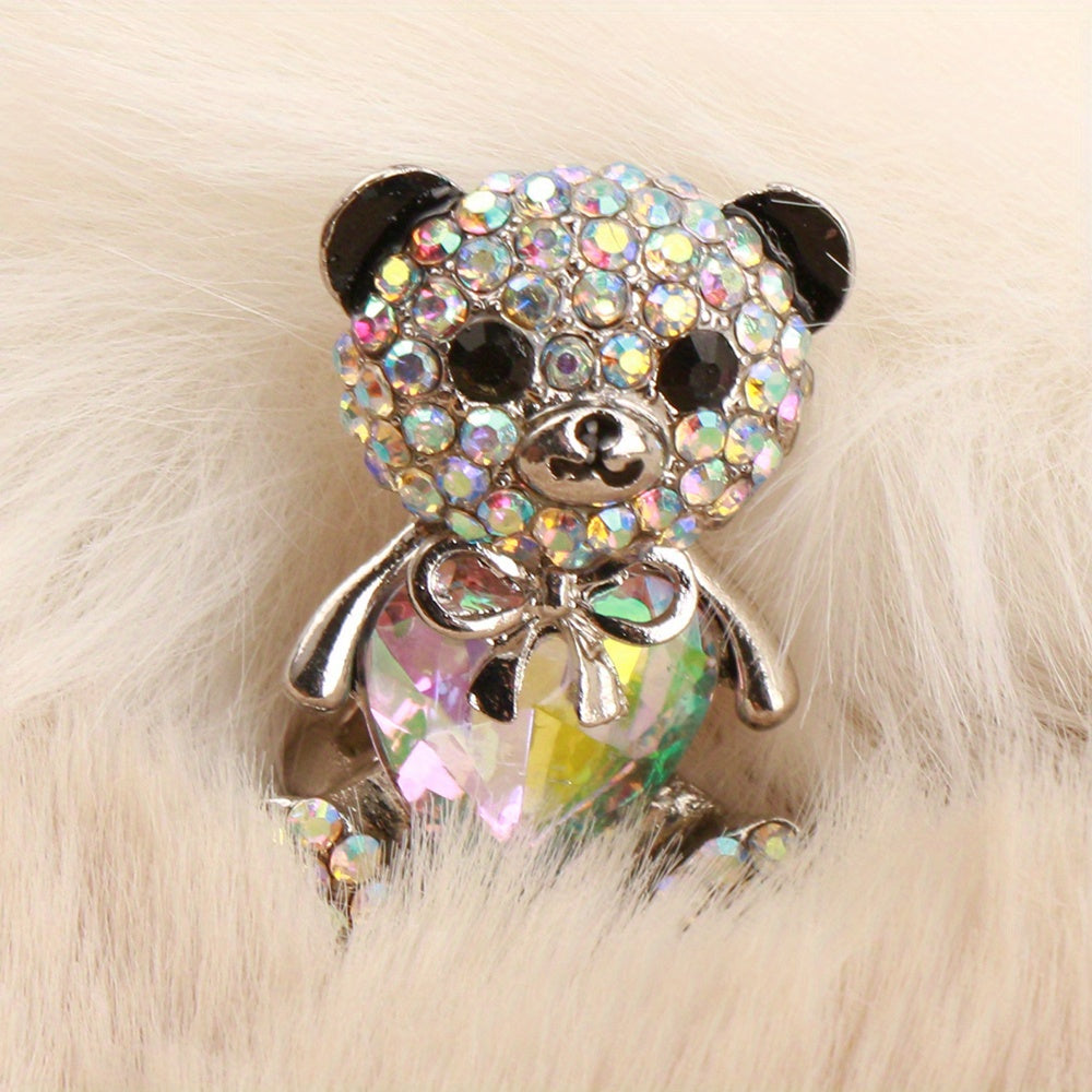 Enamel Bear Brooch with Rhinestones Animal Heart Pin Elegant Fashion Accessory