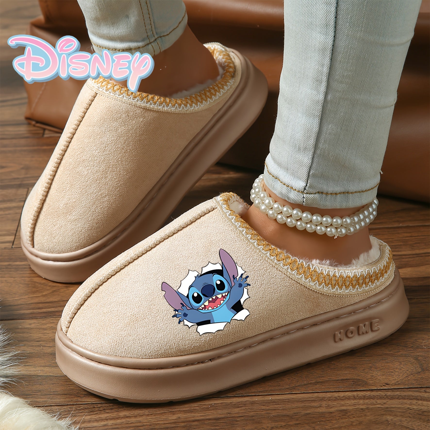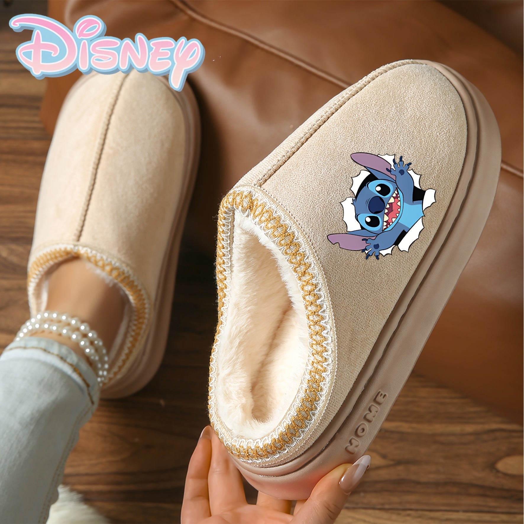 Adult Plush Slip-On Slippers with Faux Fur, Anti-Slip Sole, Brown Beige