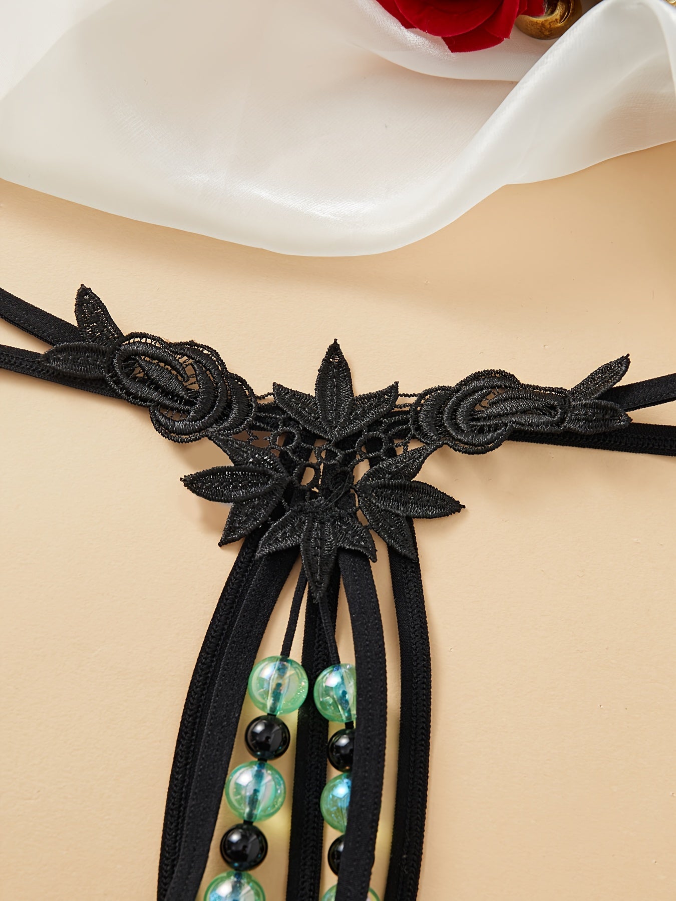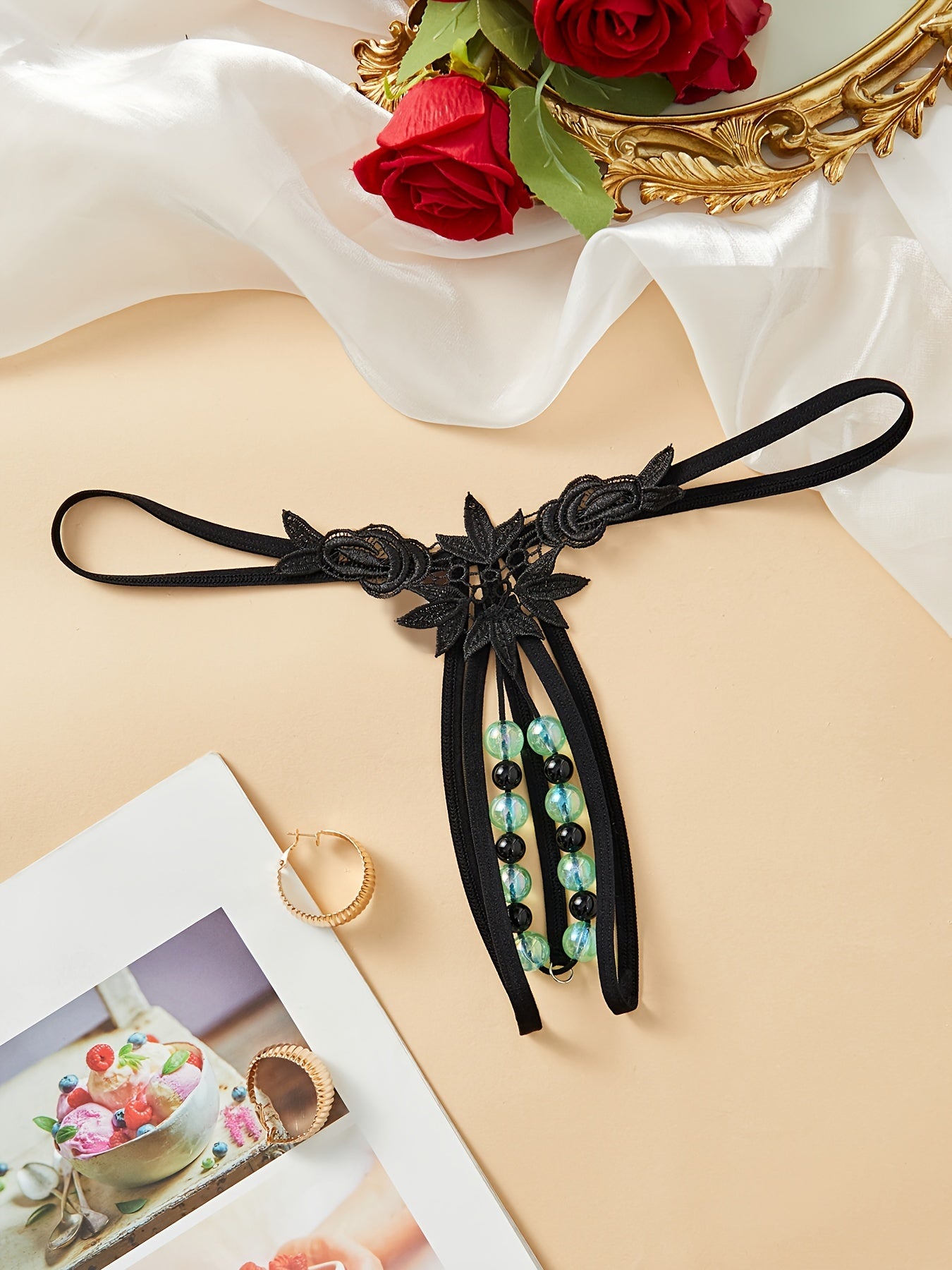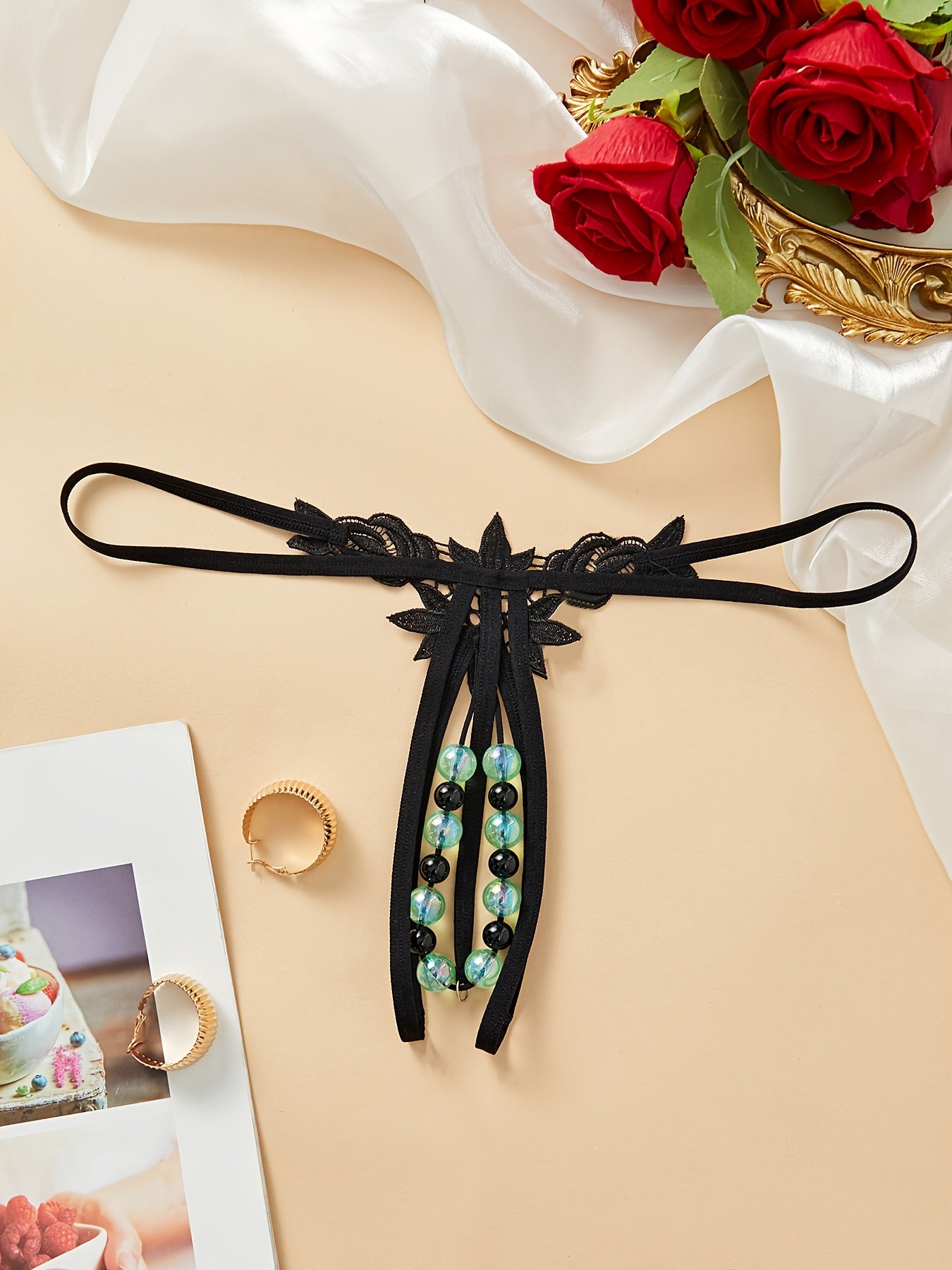 Adult Beaded G-String with Drop Waist Polyester Nylon Blend Lingerie