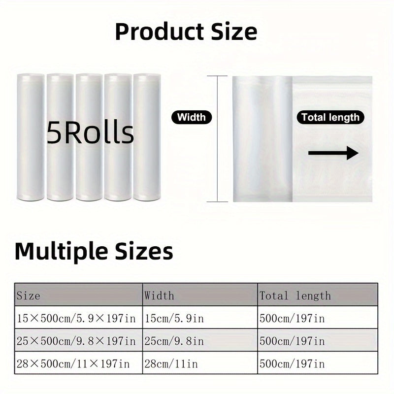 5-Pack BPA-Free Vacuum Sealing Bags 28cm x 50cm Food Storage Preservation