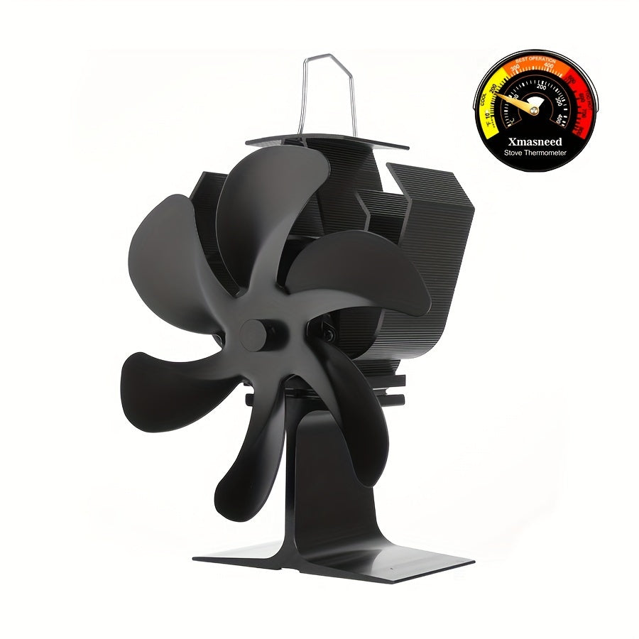 Aluminum Wood Stove Fan with Magnetic Thermometer for Camping and Indoor Use