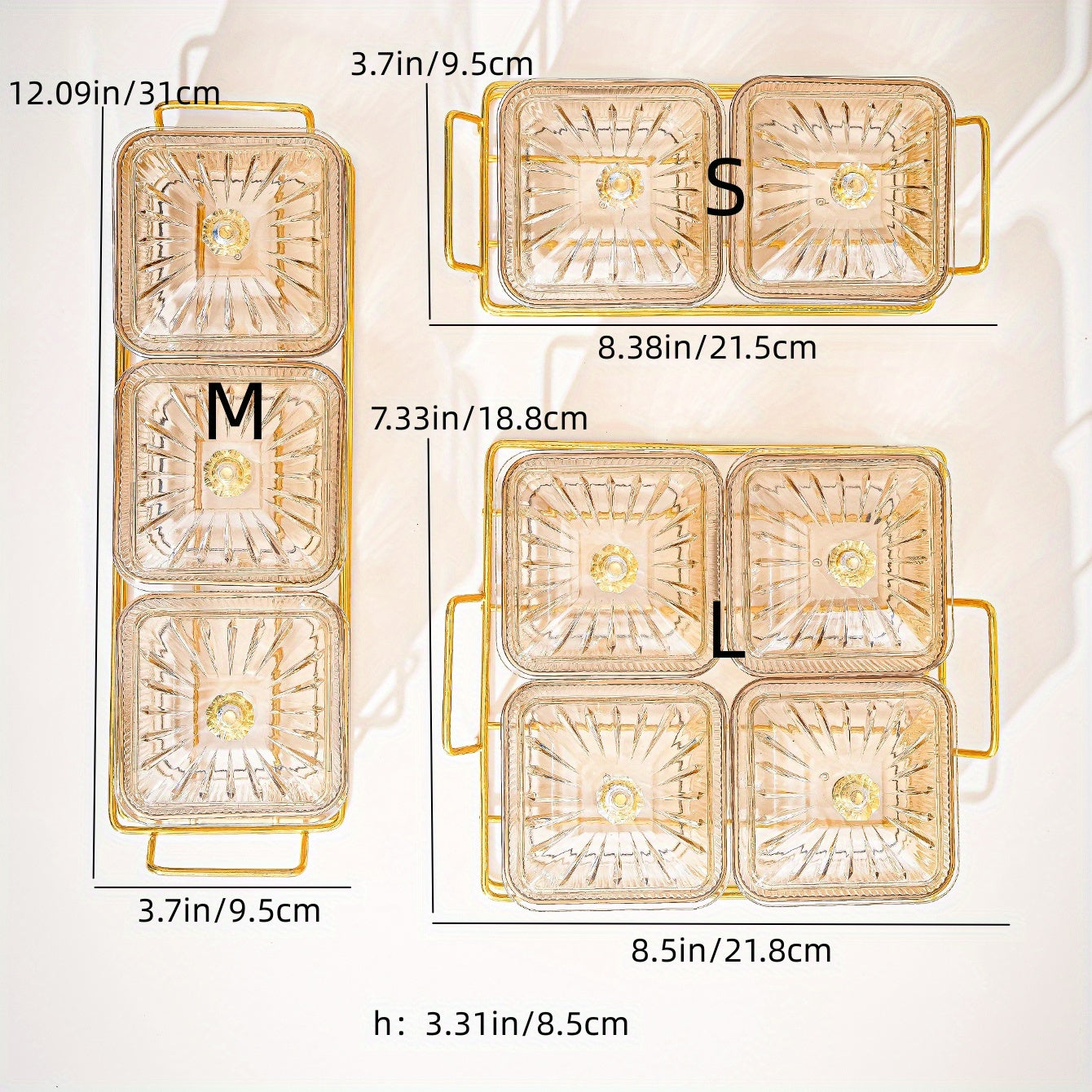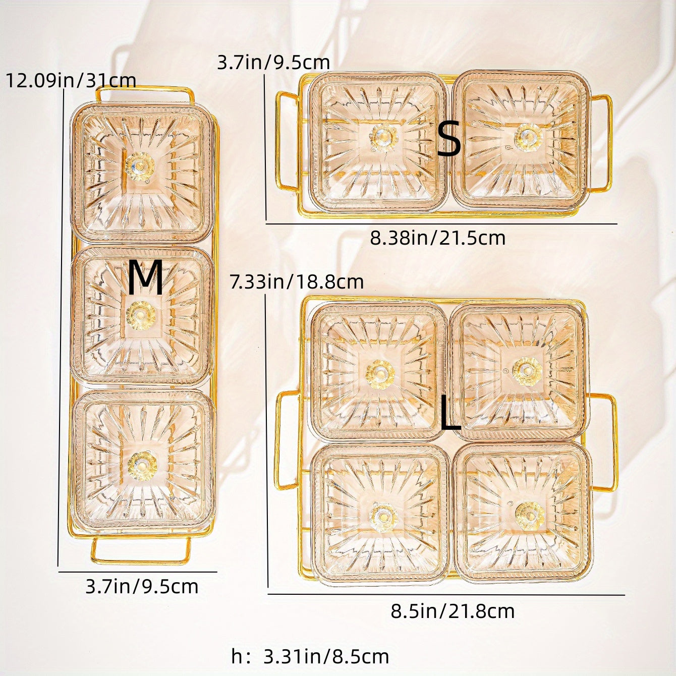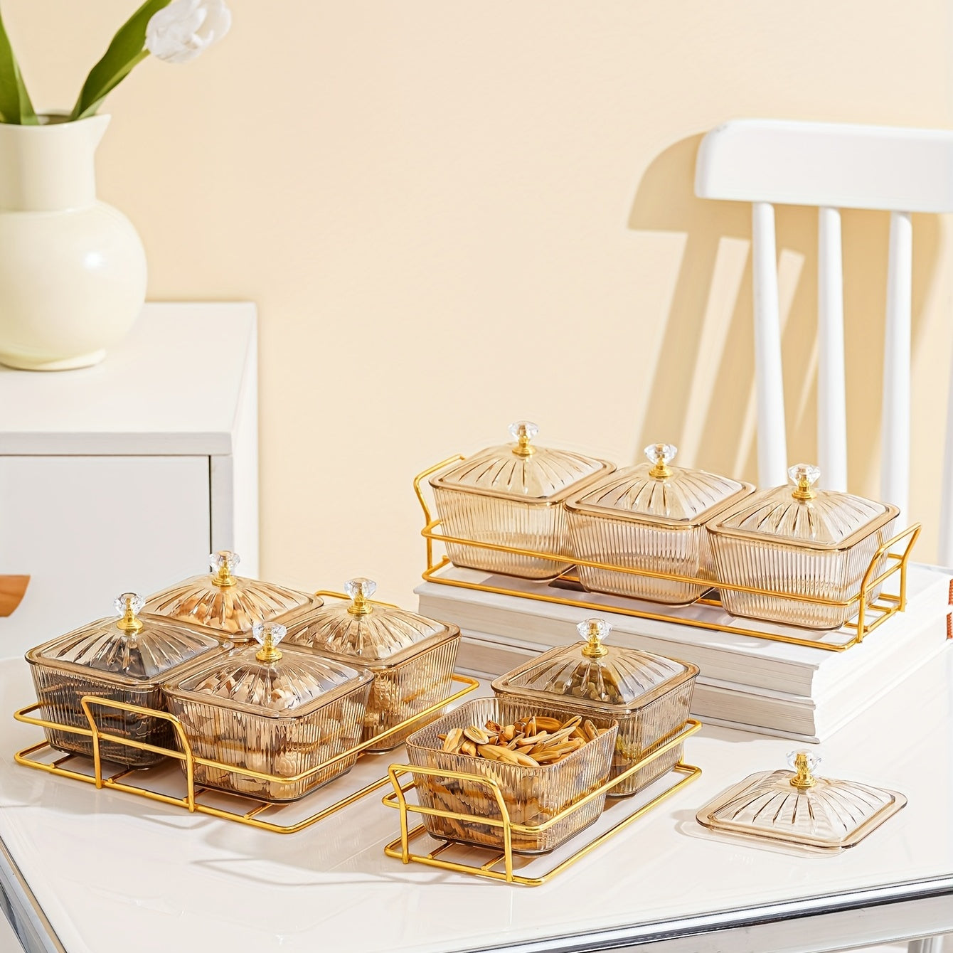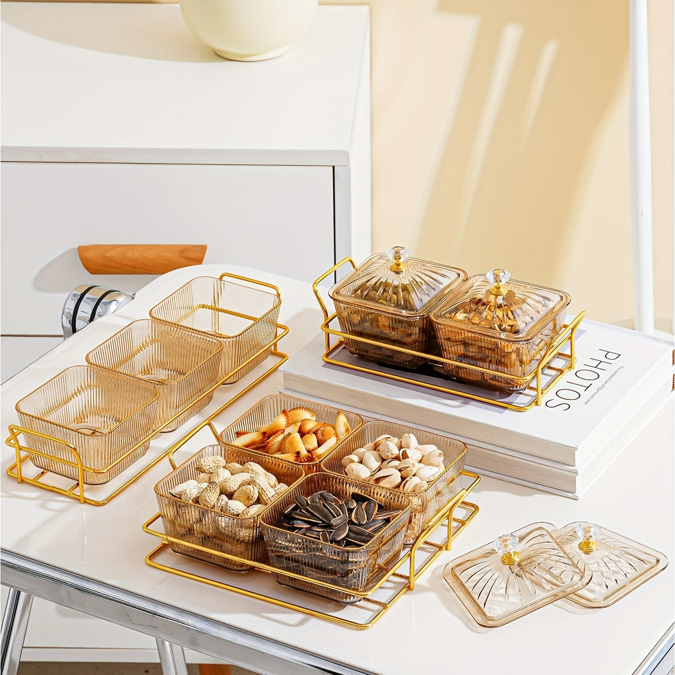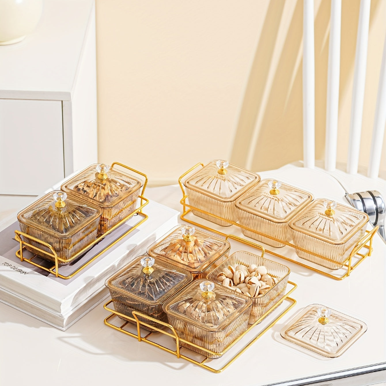 Amber Gold-T trimmed Serving Set for Dried Fruit and Nuts with Beaded Decorations