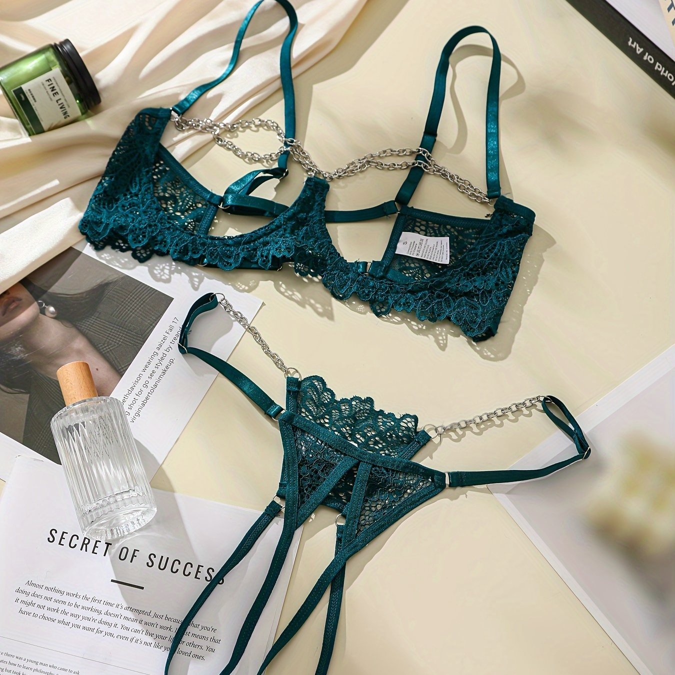Backless Lace Lingerie Set with Chain Edges for Seductive Wear