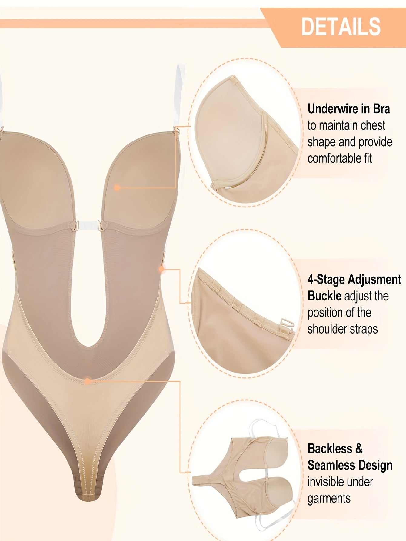 Women's Backless Shapewear Bodysuit with Built-in Bra and Waist Control