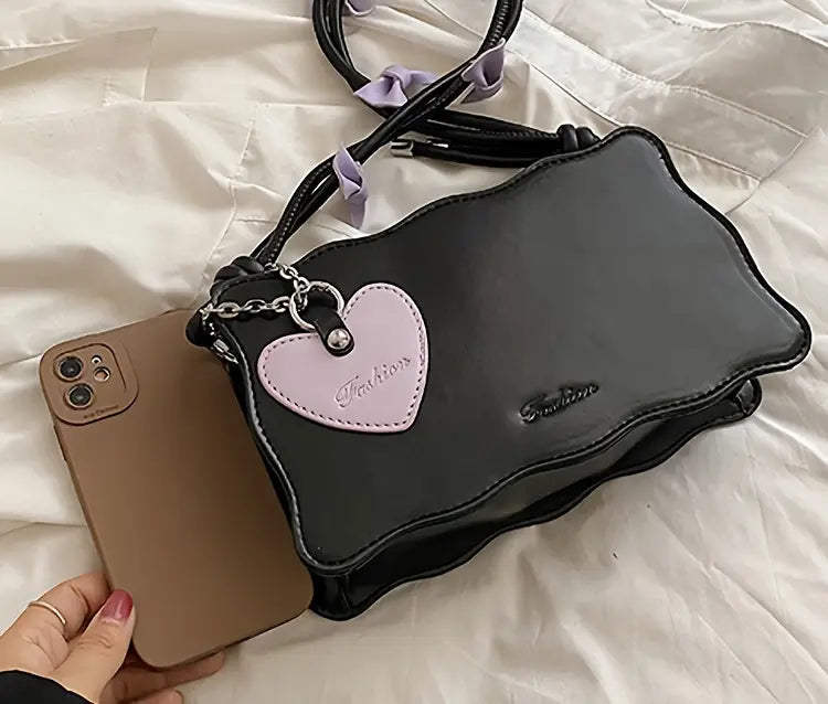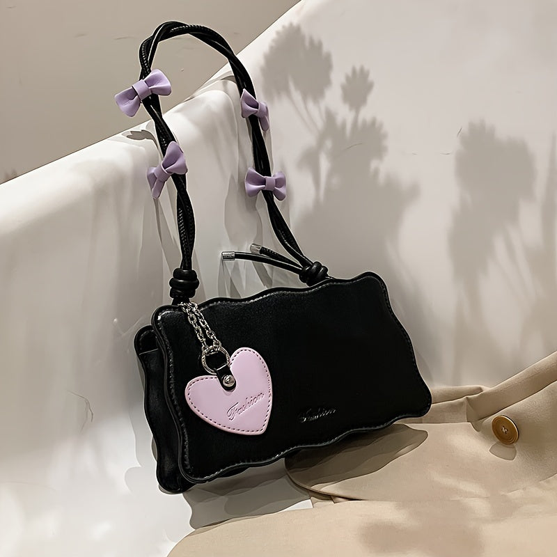 PU Leather Baguette Shoulder Bag with Butterfly Bow Accents Water-Resistant Zipper Closure