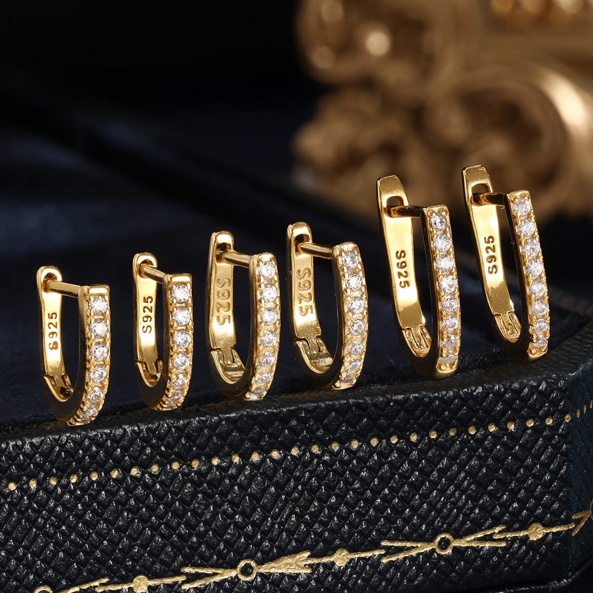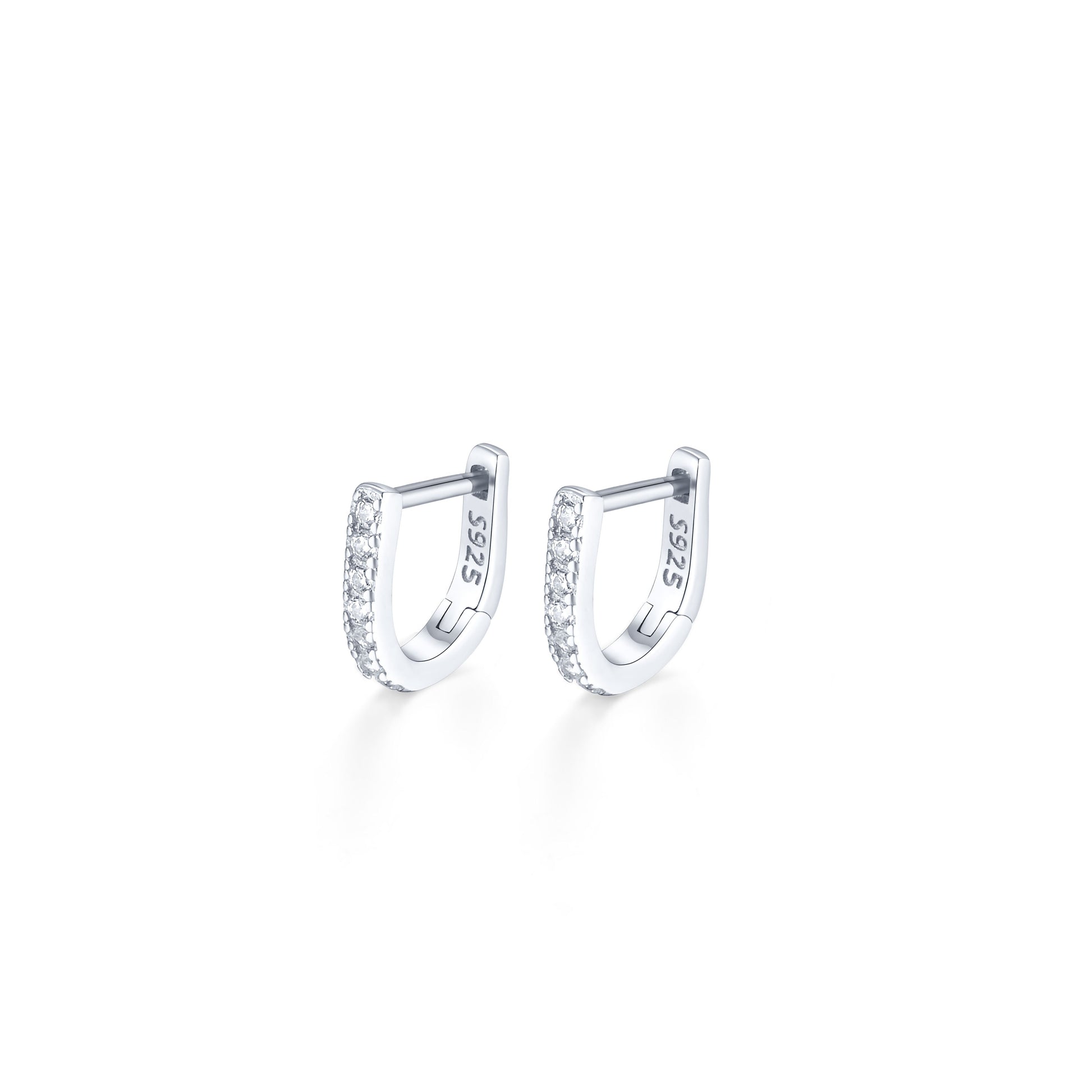 Sterling Silver Hoop Earrings with Zirconia Stones for Women
