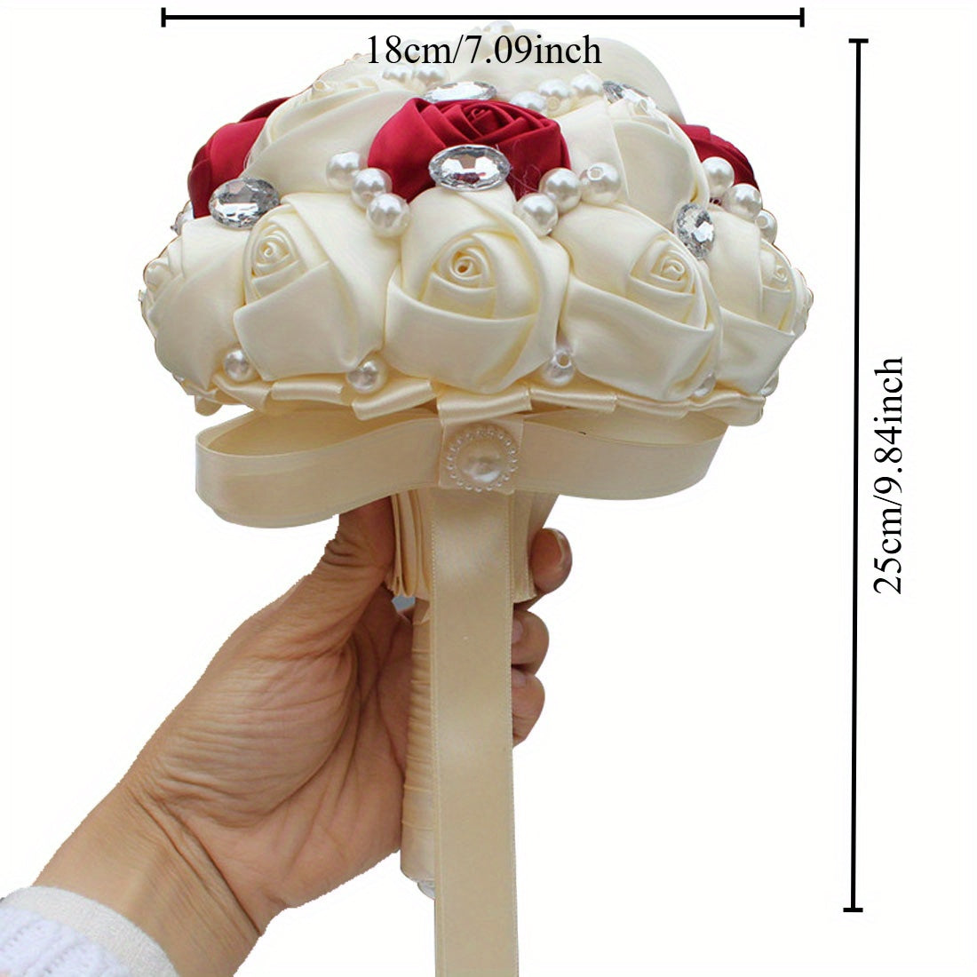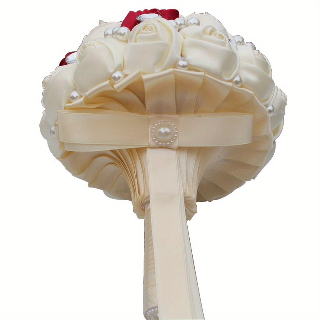 Pearl Bridal Bouquet with Ribbon Artificial Flowers for Weddings and Festivals 18cm