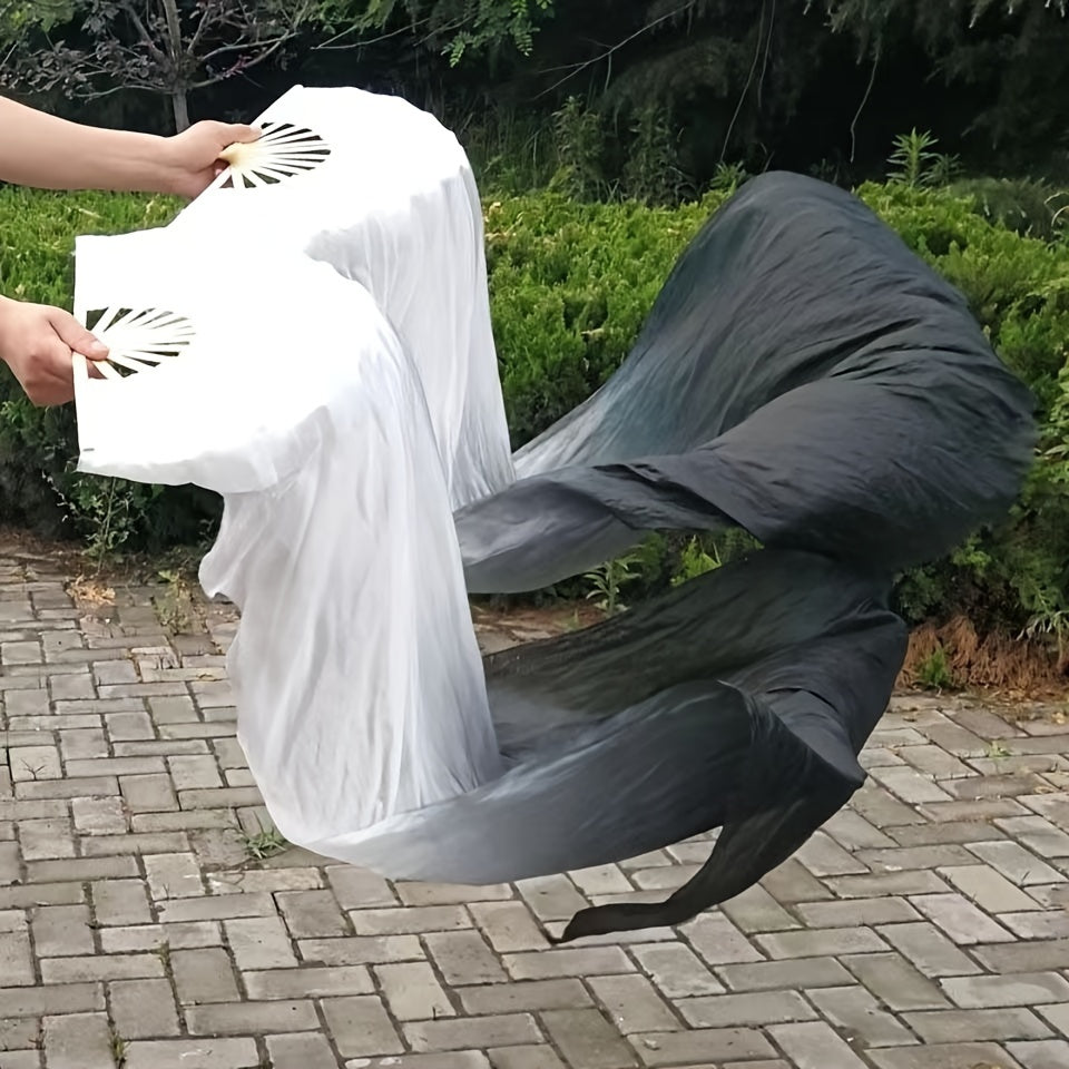 Silk Dance Fan with Black and White Gradient Lightweight for Women