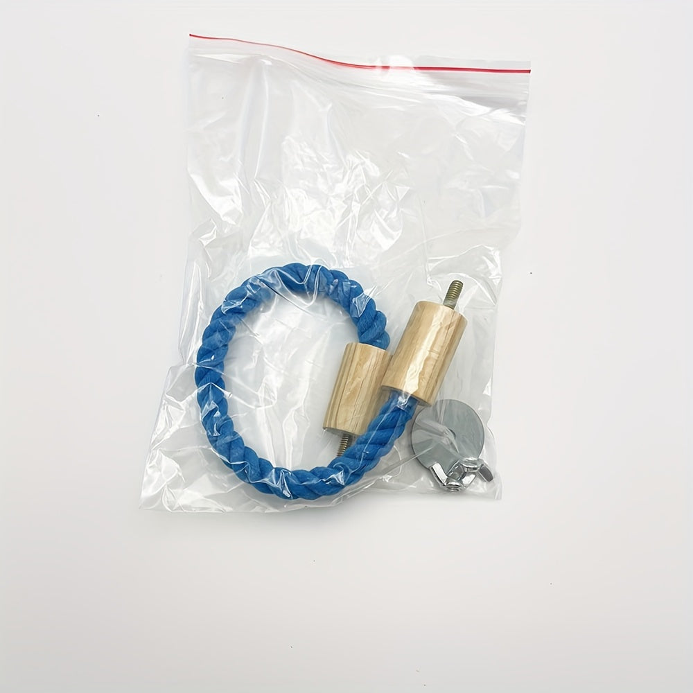Blue Braided Rope Bird Perch with Wooden Platforms for Small Birds and Pets