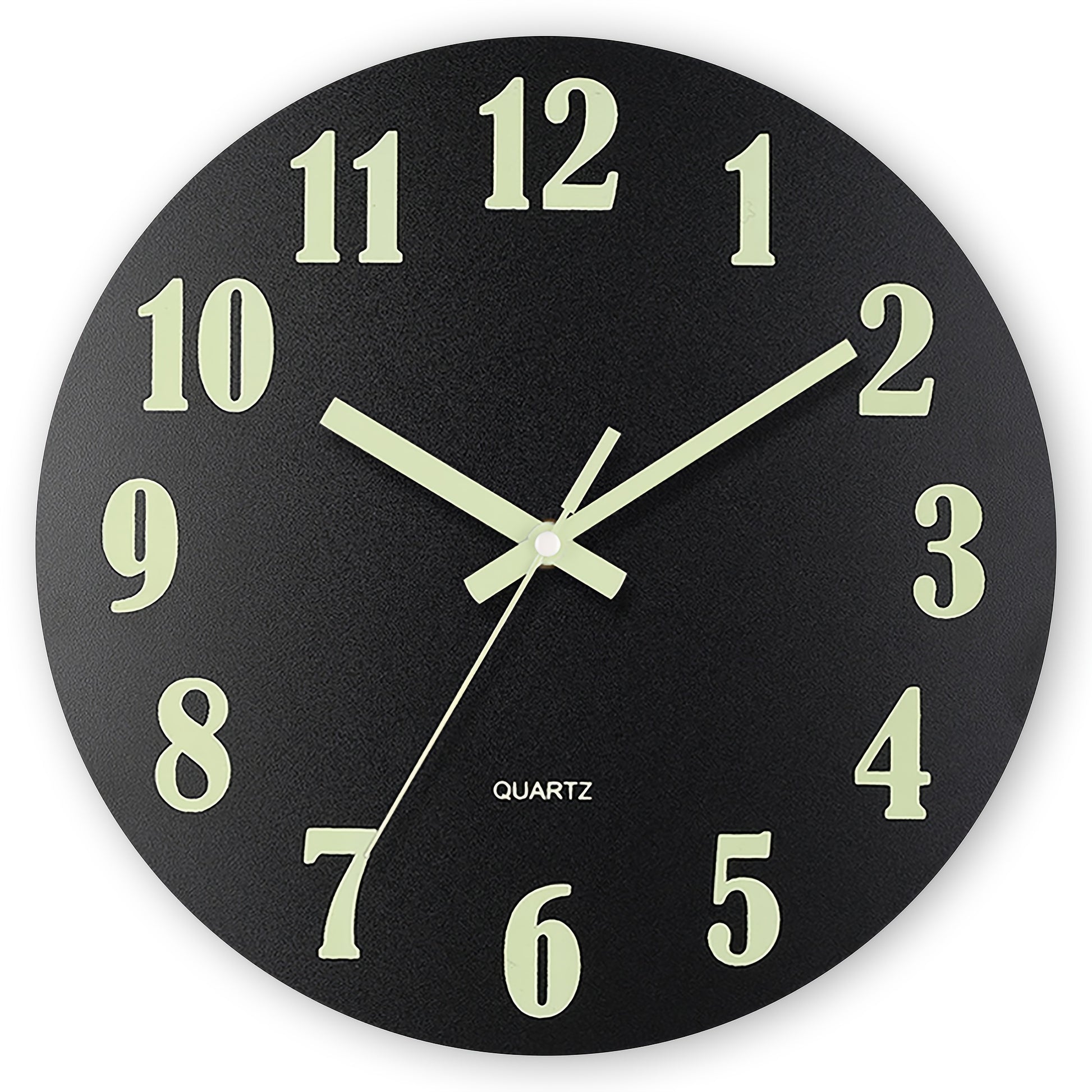 Black Glow-in-the-Dark Wall Clock with Retro Design and Silent Movement