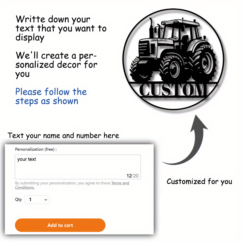 Black Iron Tractor Wall Art with Customizable Design for Farm Decor