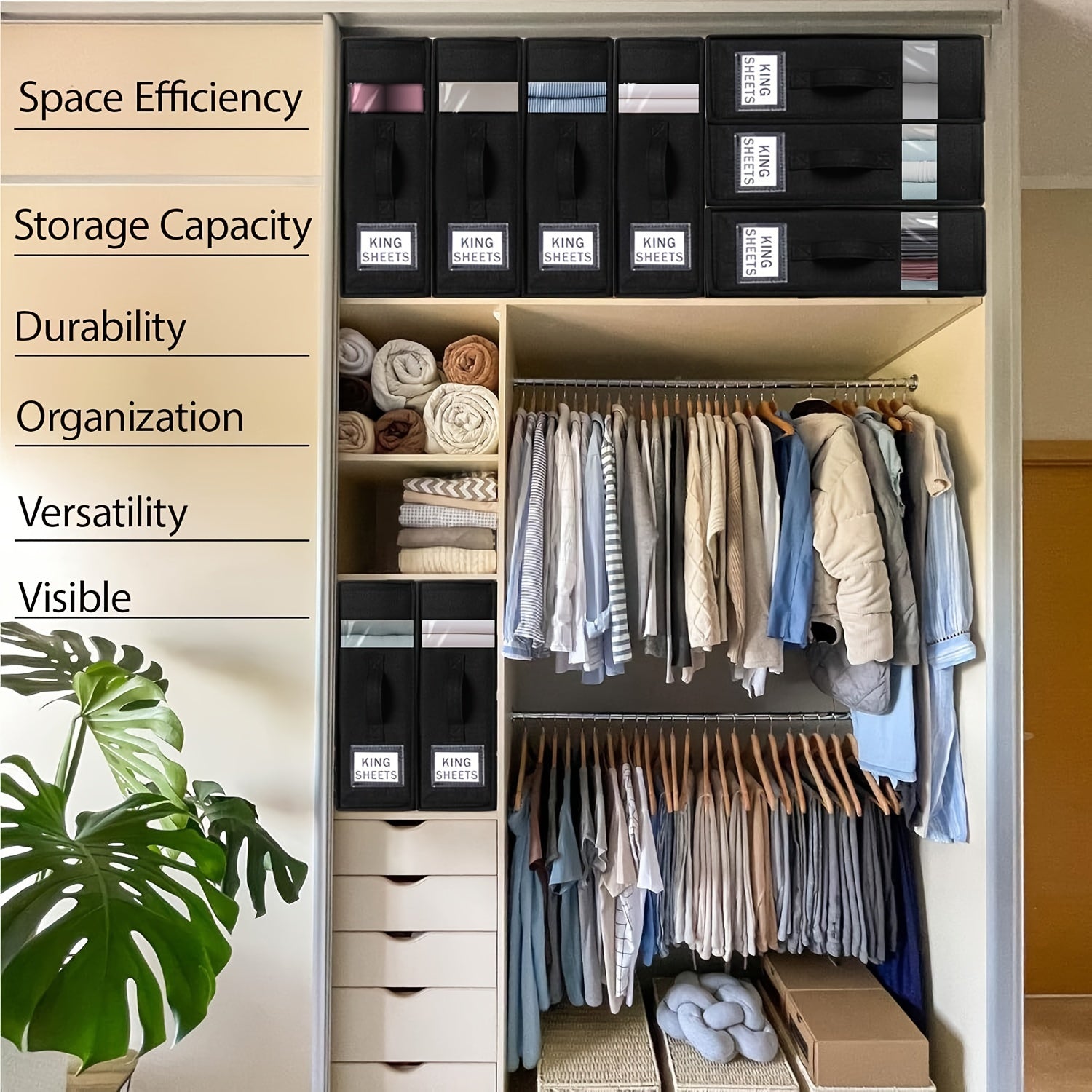 Black King Size Bed Sheet Organizer with Handle for Linen Closet
