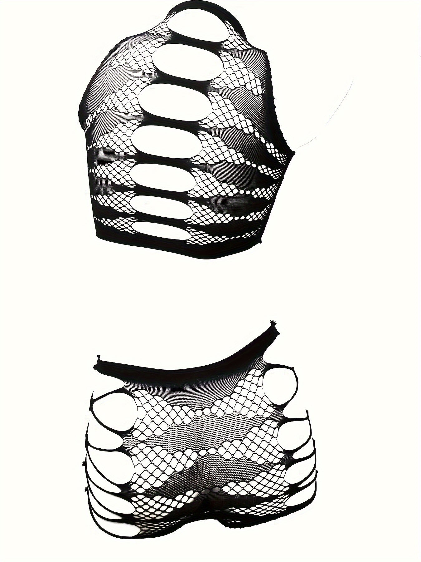 Black Lace Bodysuit and High-Waisted Shorts Set for Women
