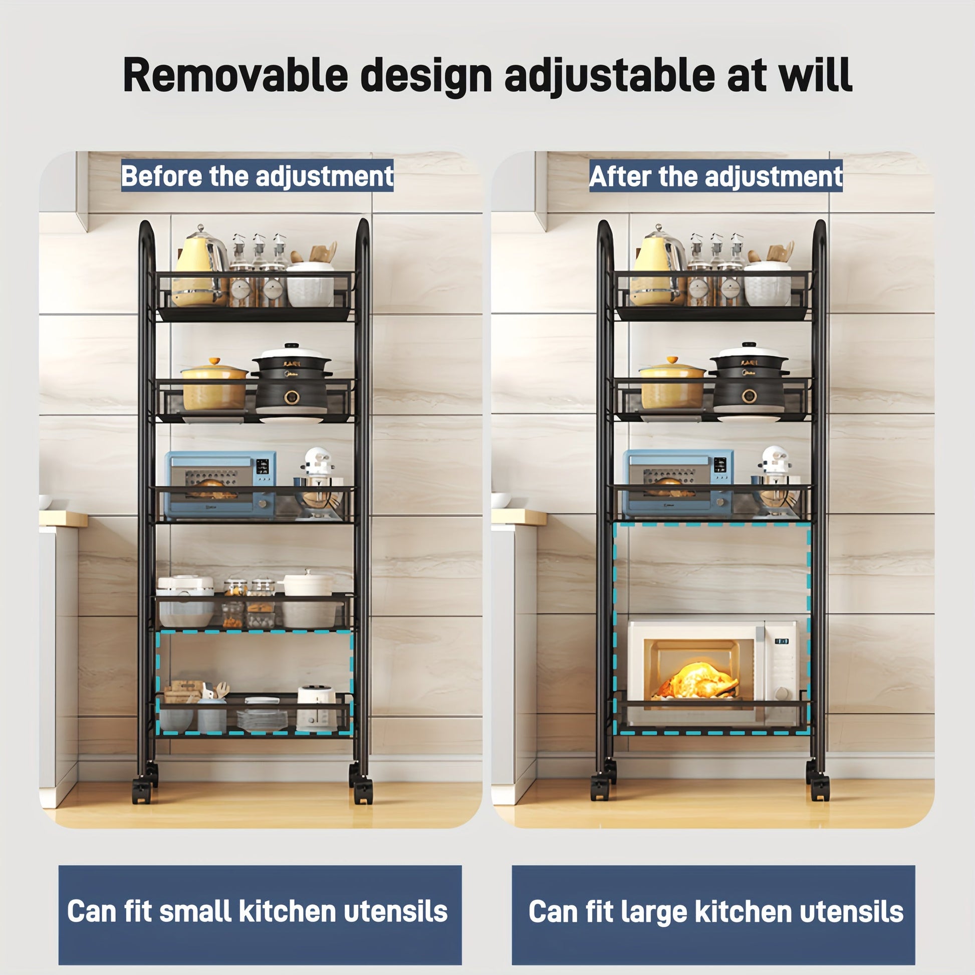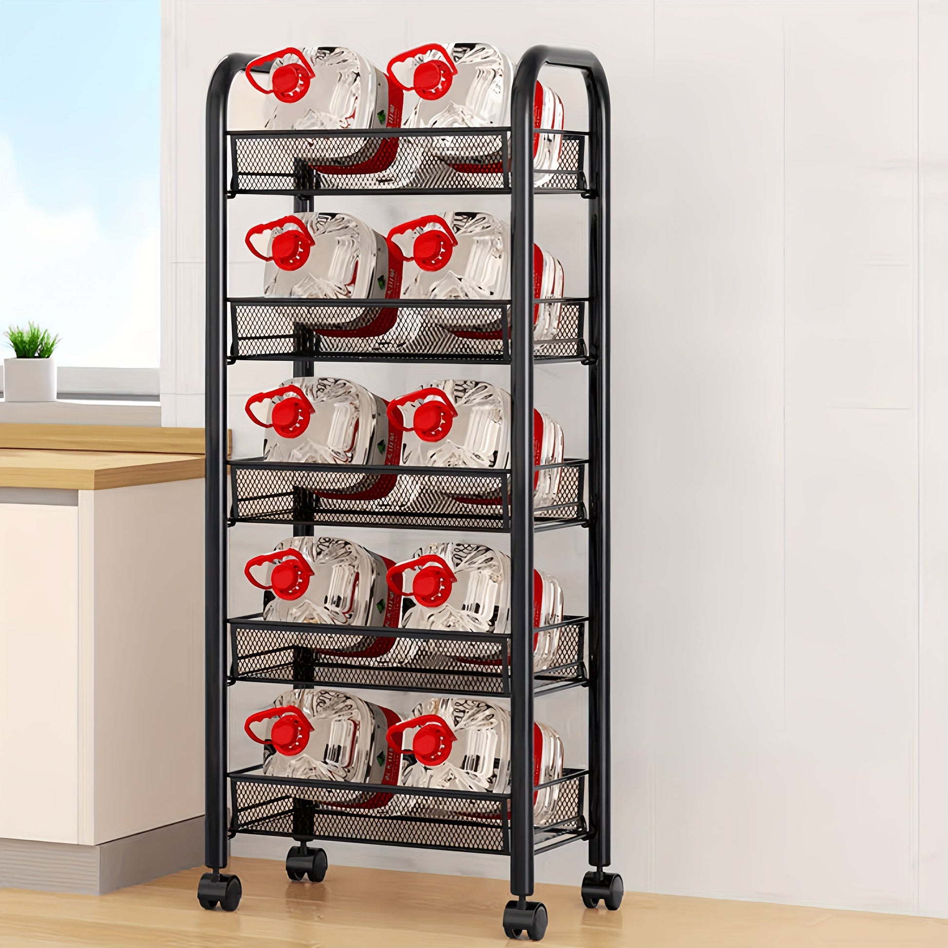 Black Mesh Rolling Wire Cart with Lockable Wheels and Metal Baskets for Kitchen Office Storage