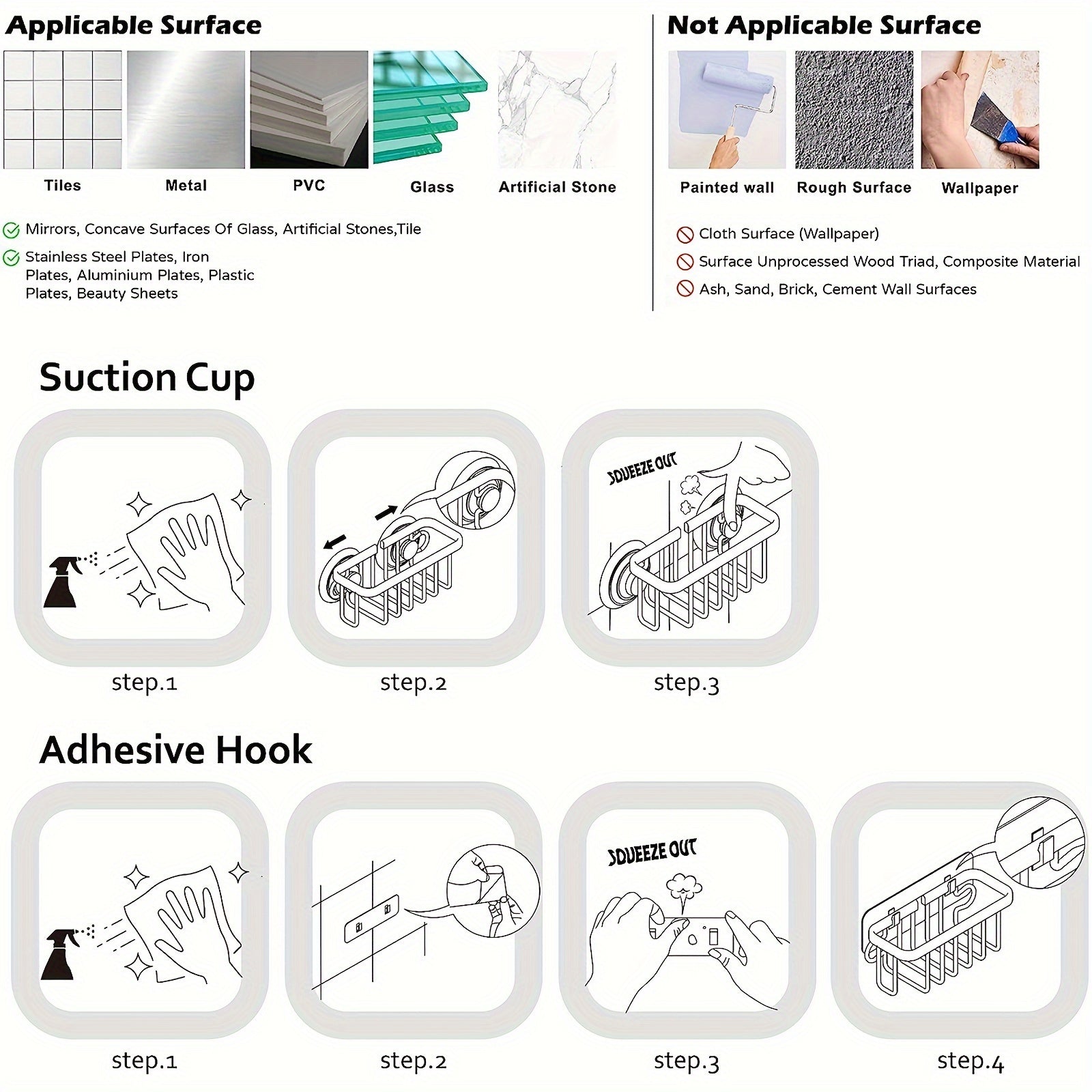 Black Metal Sink Caddy with Suction Cup for Dish Cloth and Sponge Rust-Resistant Kitchen Bathroom Organizer
