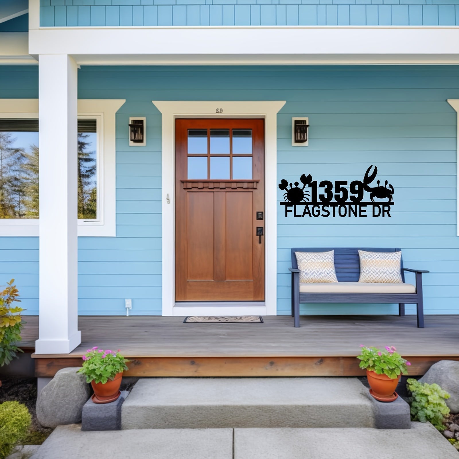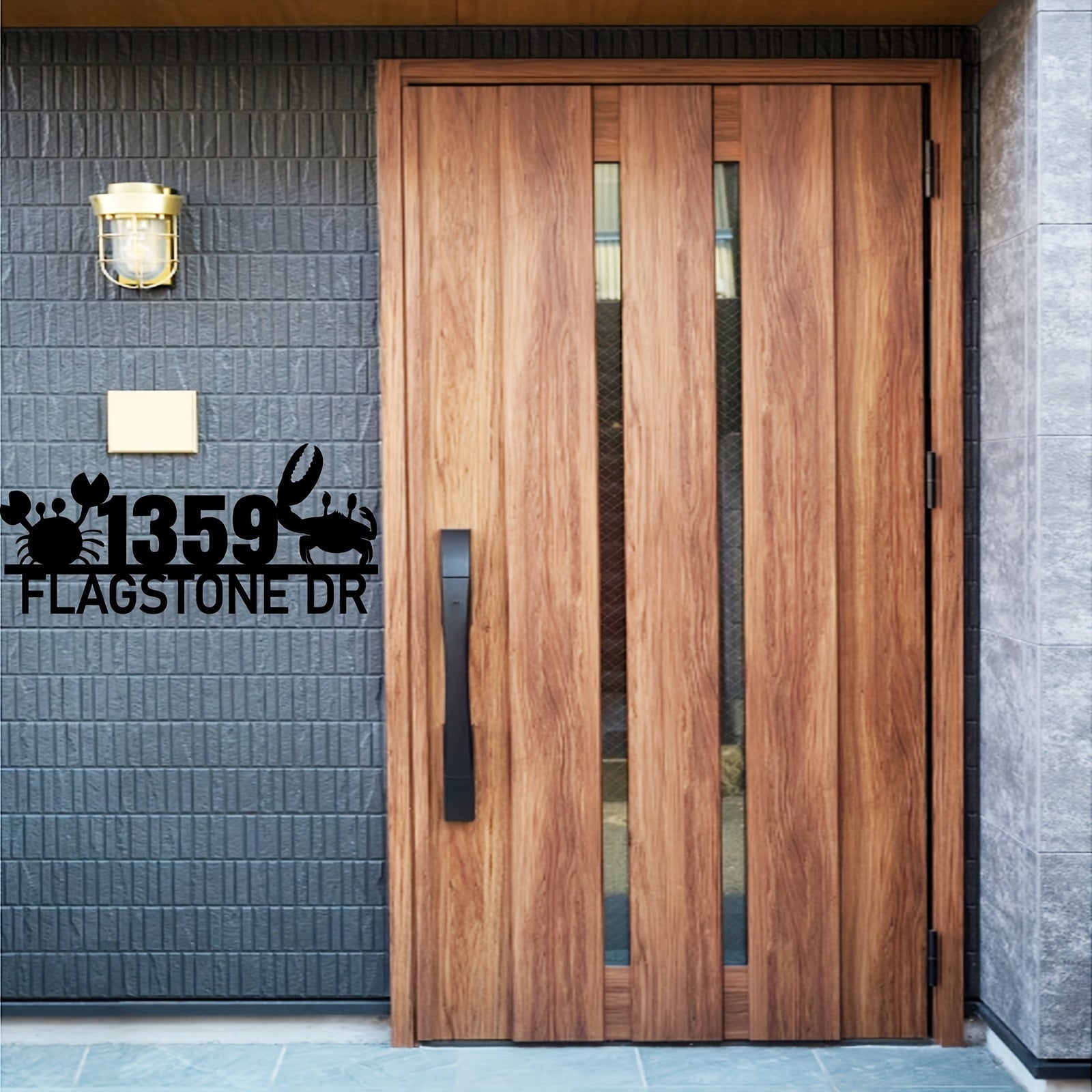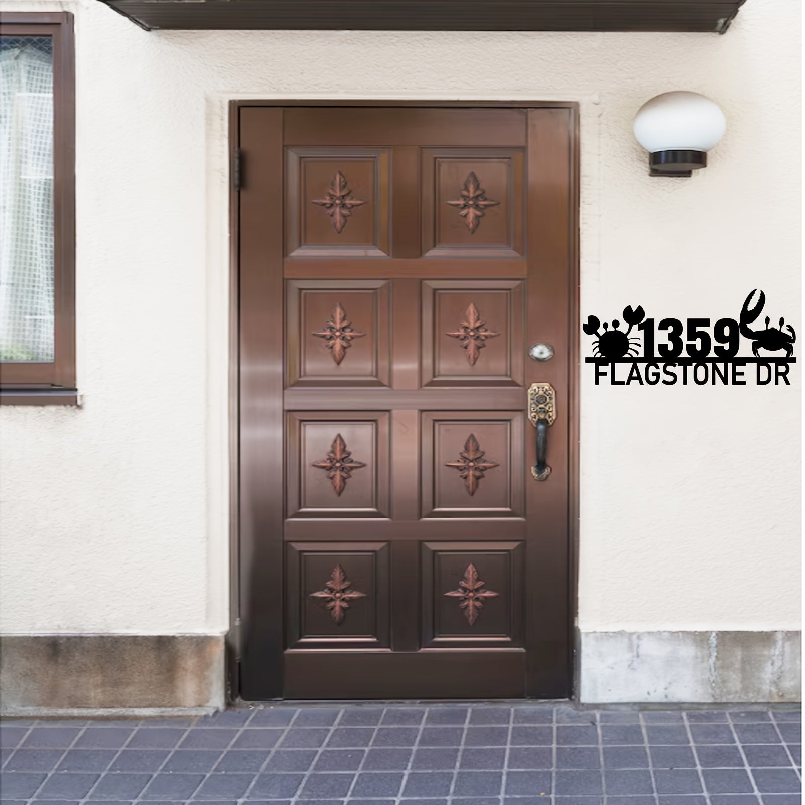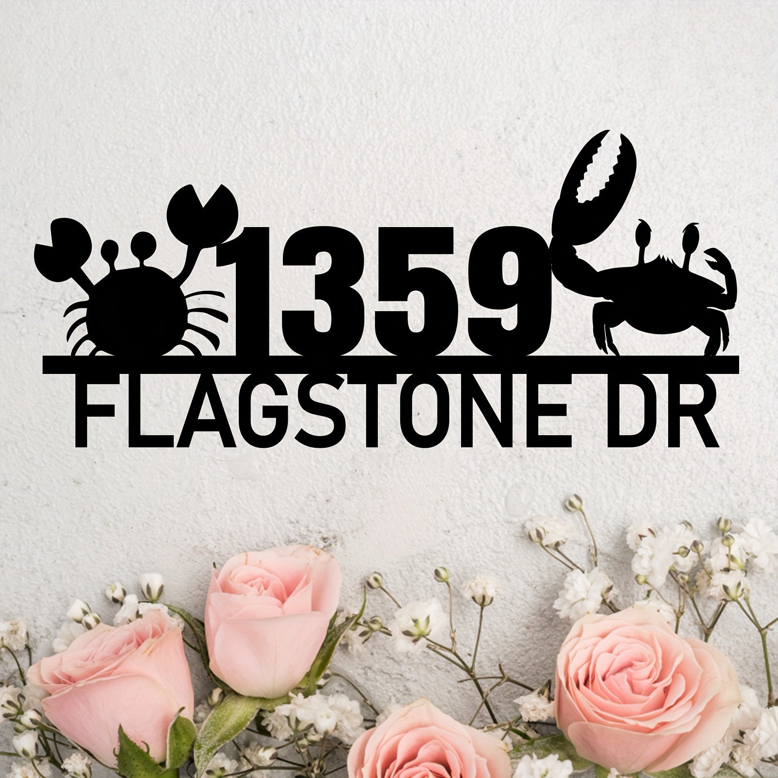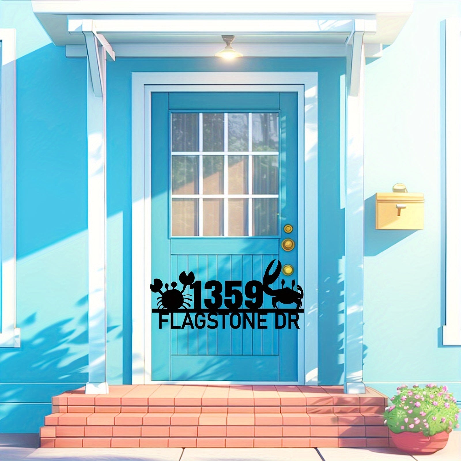 Black Nautical House Number Plaque Iron Crab Wall Mount Address Sign for Home Decor