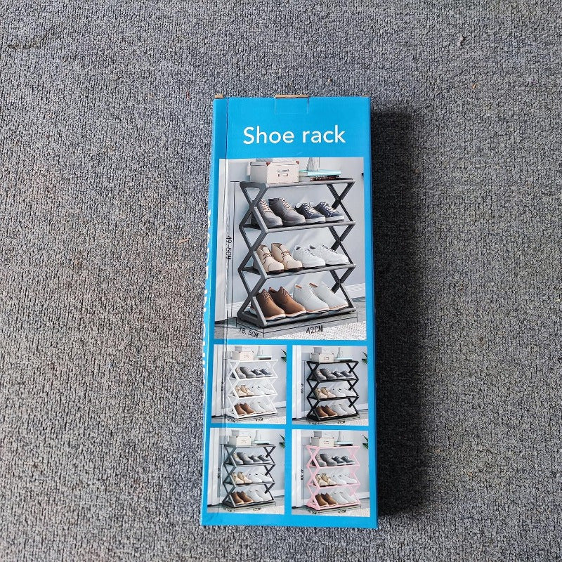 Black Plastic Freestanding Shoe Rack with Expandable Adjustable Shelves 4 Tiers