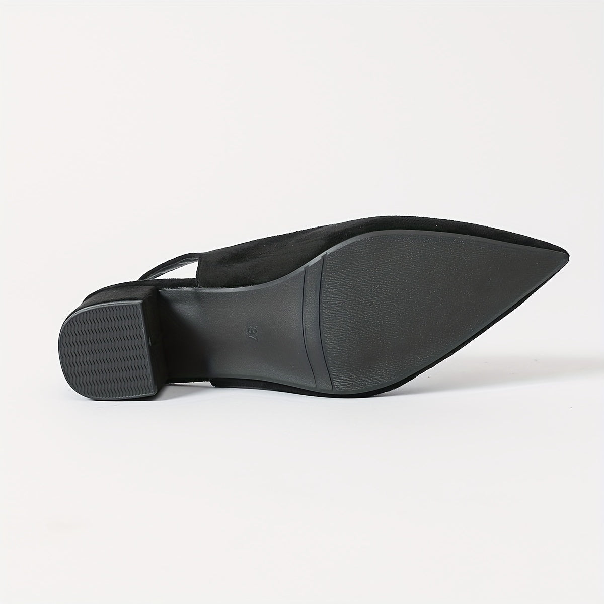 Women's Black Velvet Pointed Toe Pumps with Ankle Strap and Mid Heel
