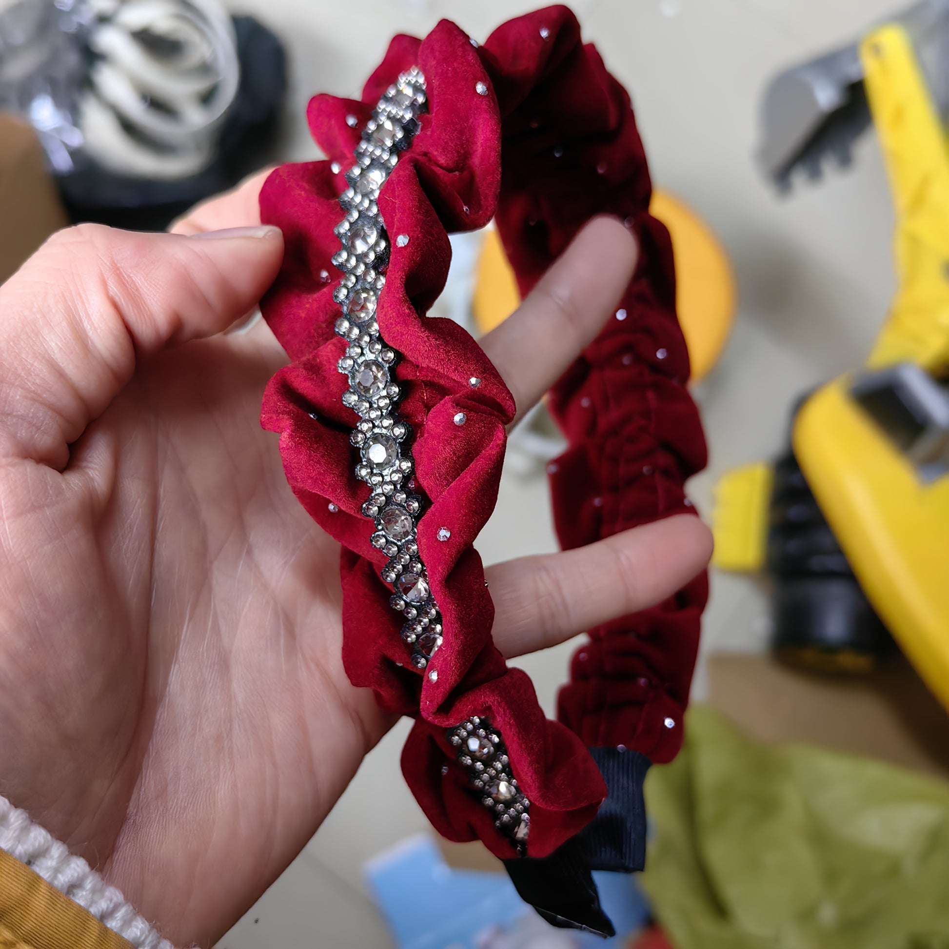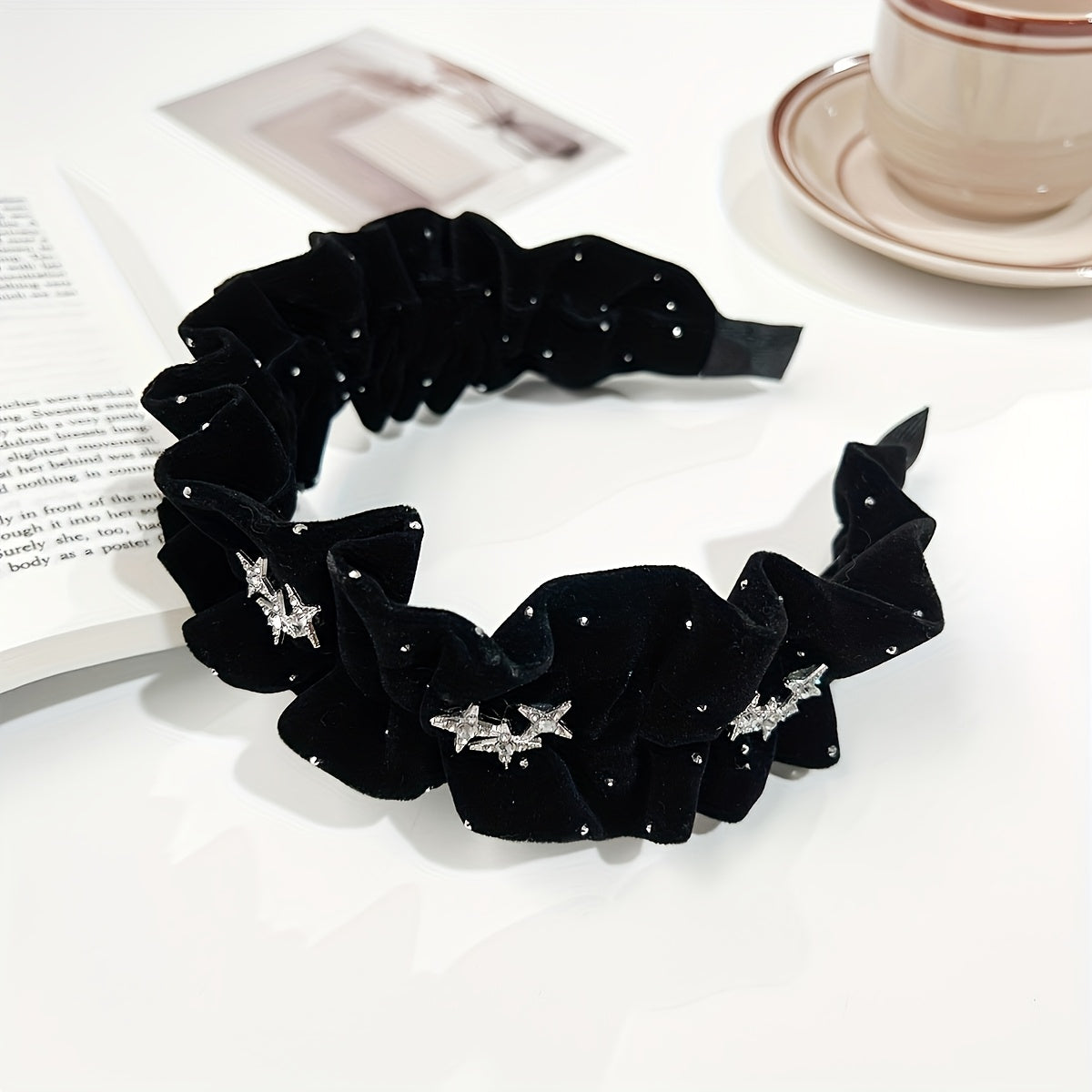 Black Velvet Headband with Rhinestones for Weddings and Formal Events