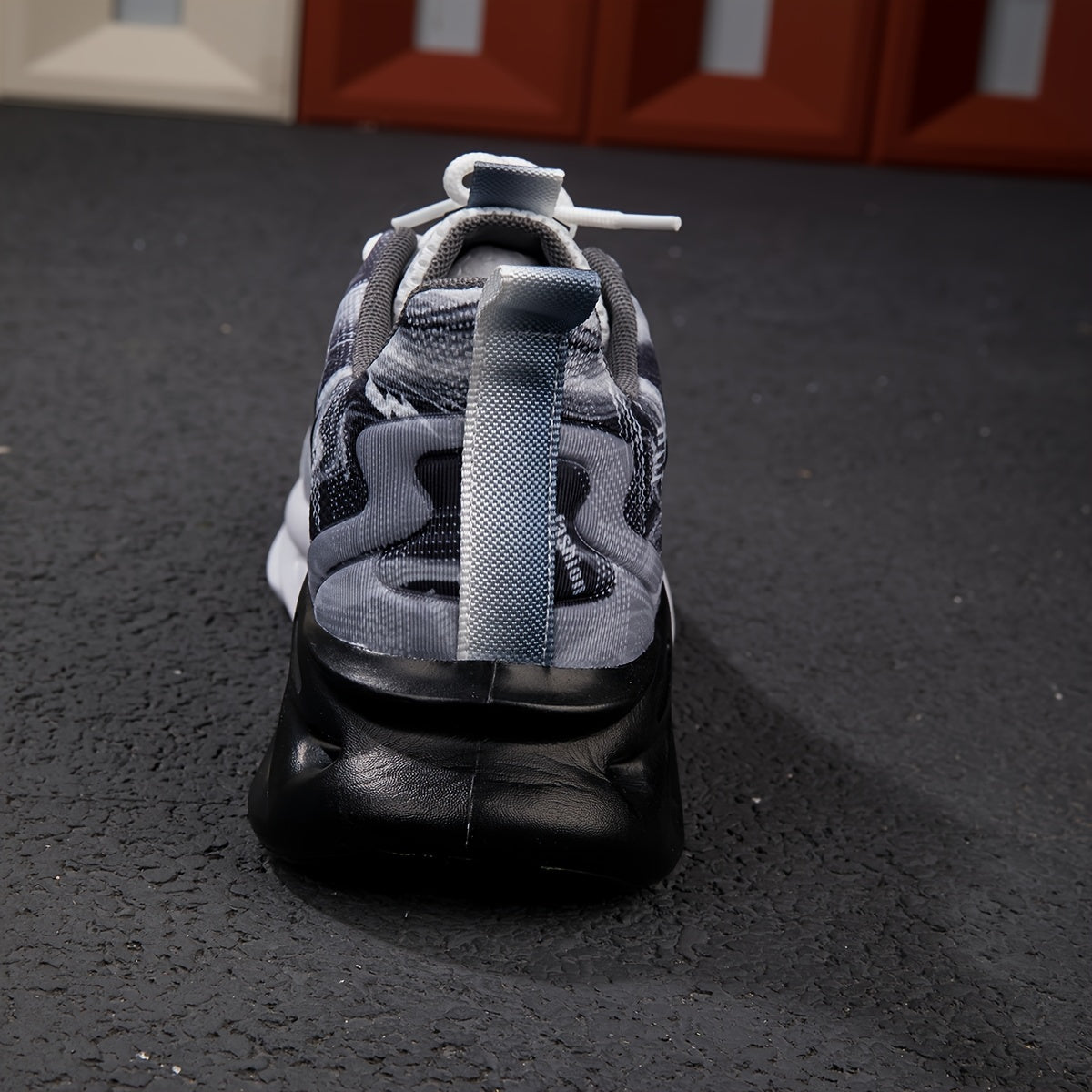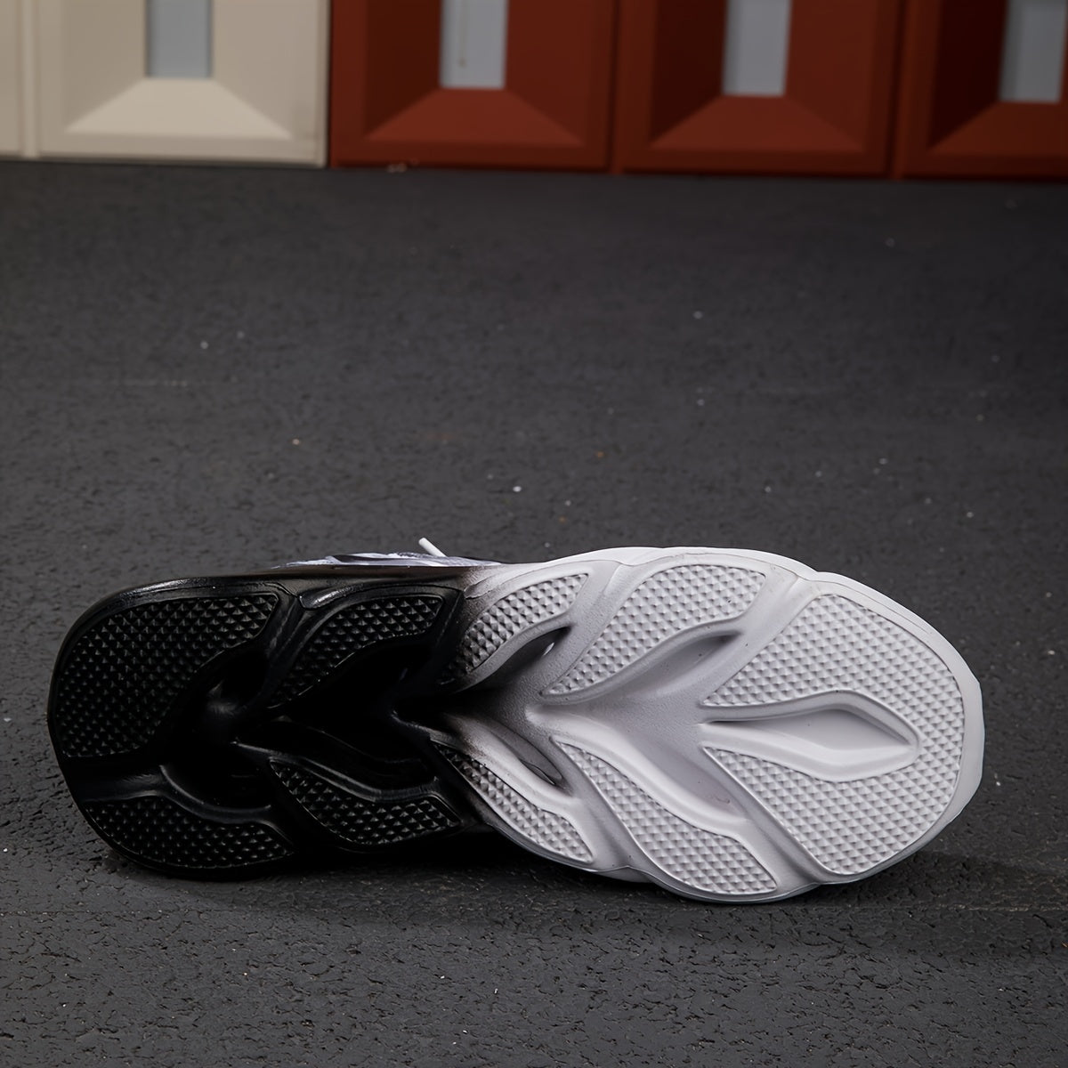 Men's Black and White Gradient Mesh Sneakers with Thick Sole for Height Boost Running Casual Autumn