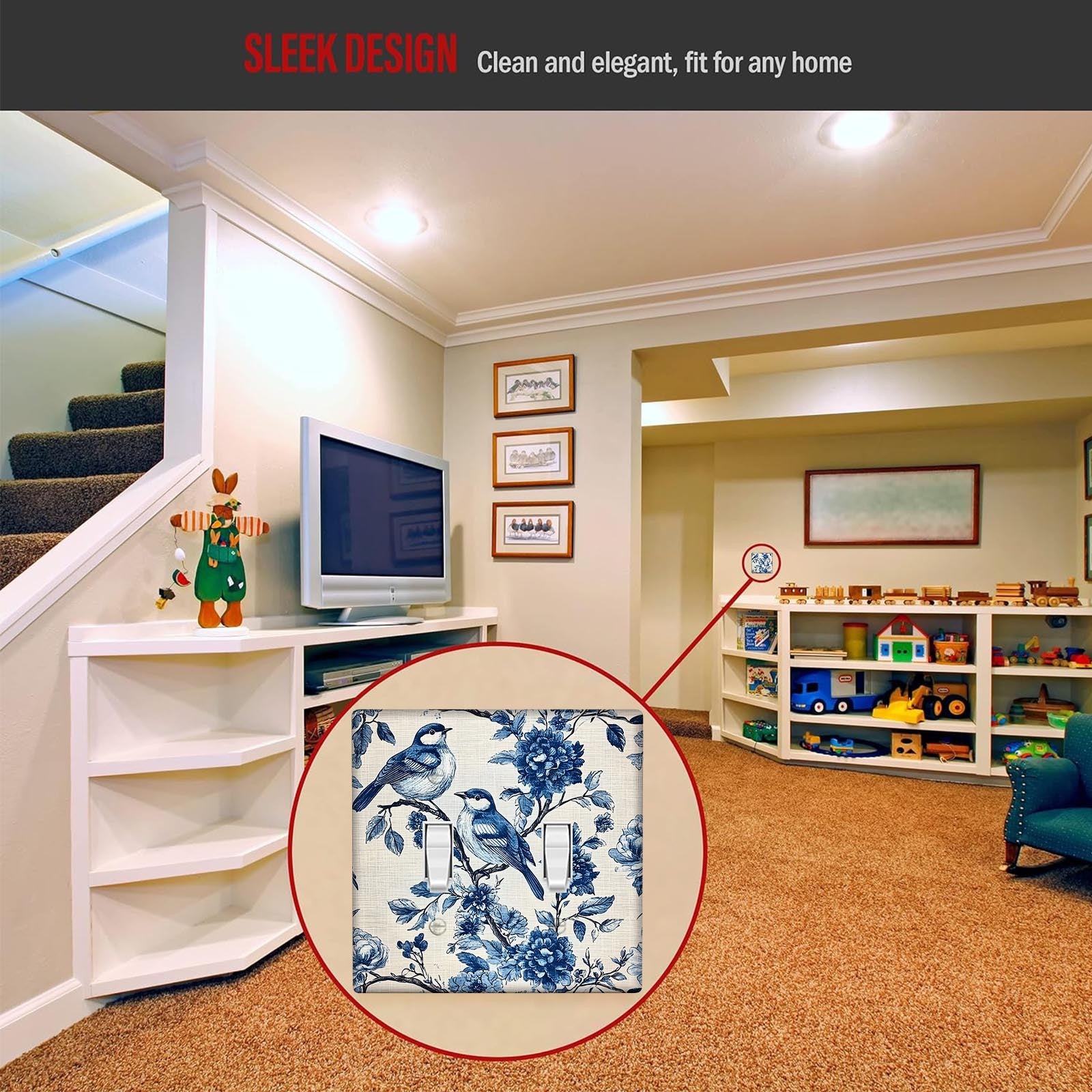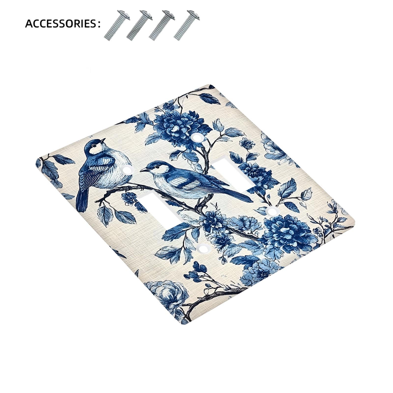 Blue Birds and Floral Wall Plate Cover for Teen Room Bedroom Bathroom Playroom