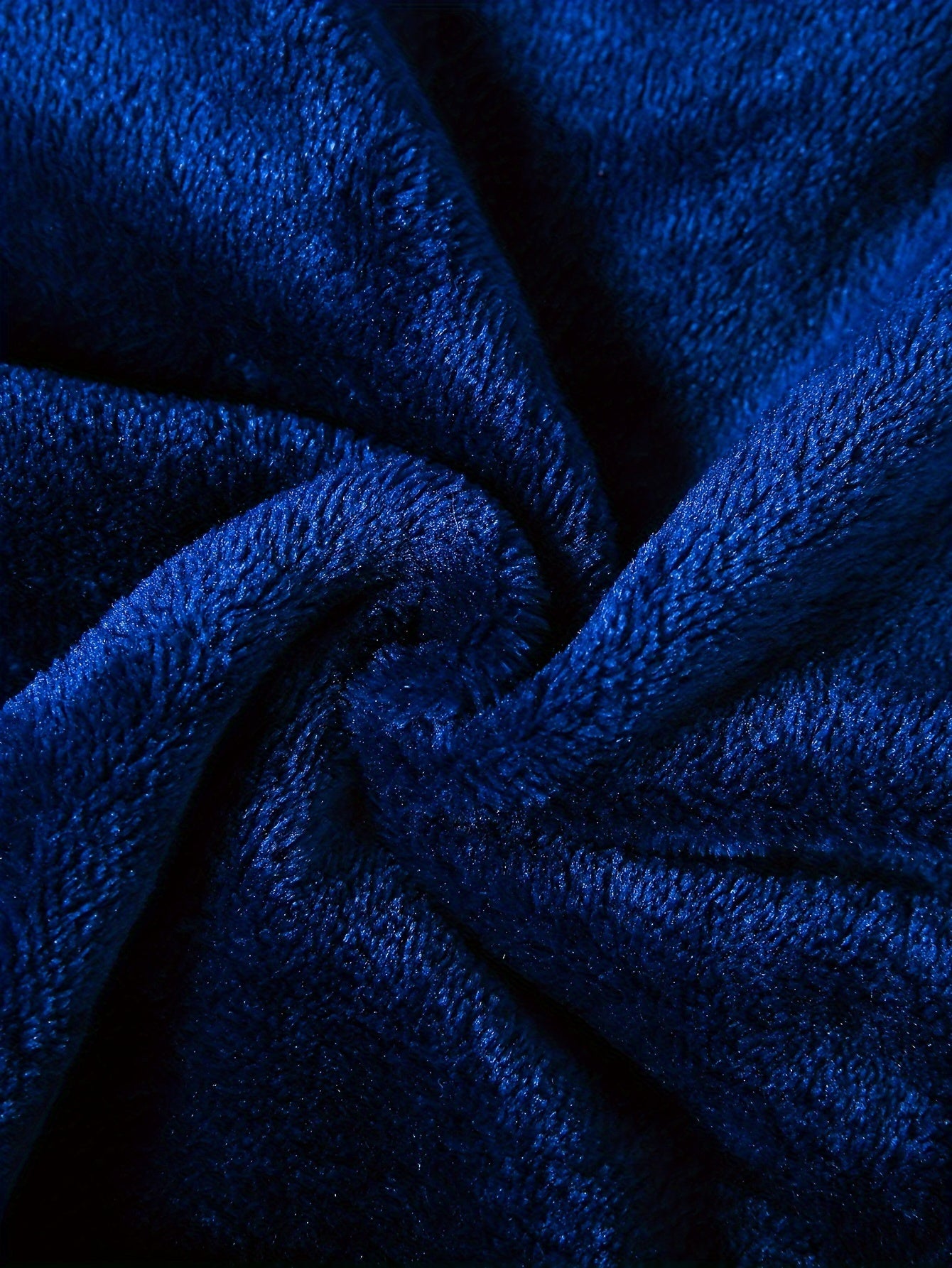 Kids Blue Flannel Hooded Bathrobe with Rocket Embroidery Cozy Thick Machine Washable