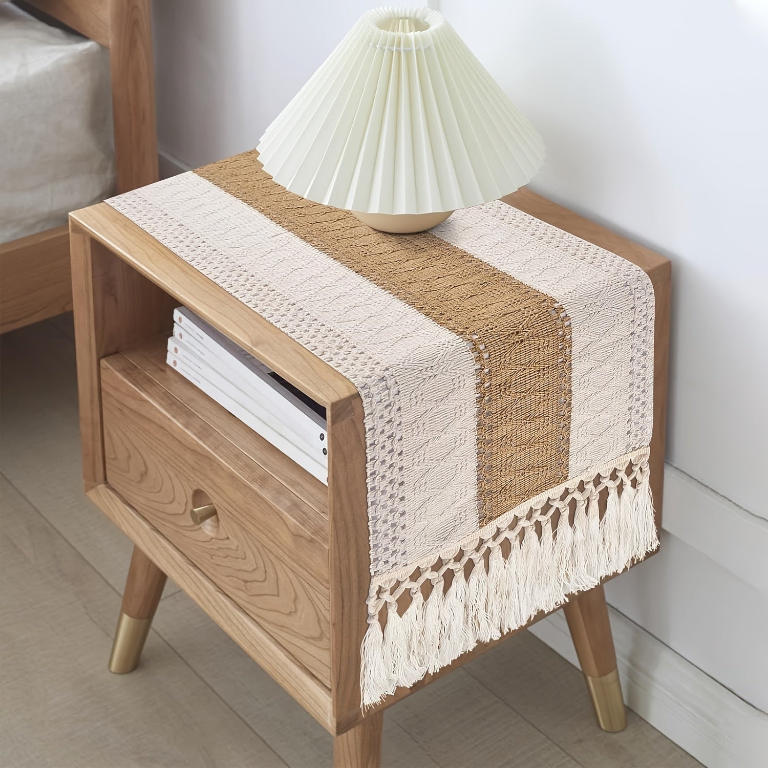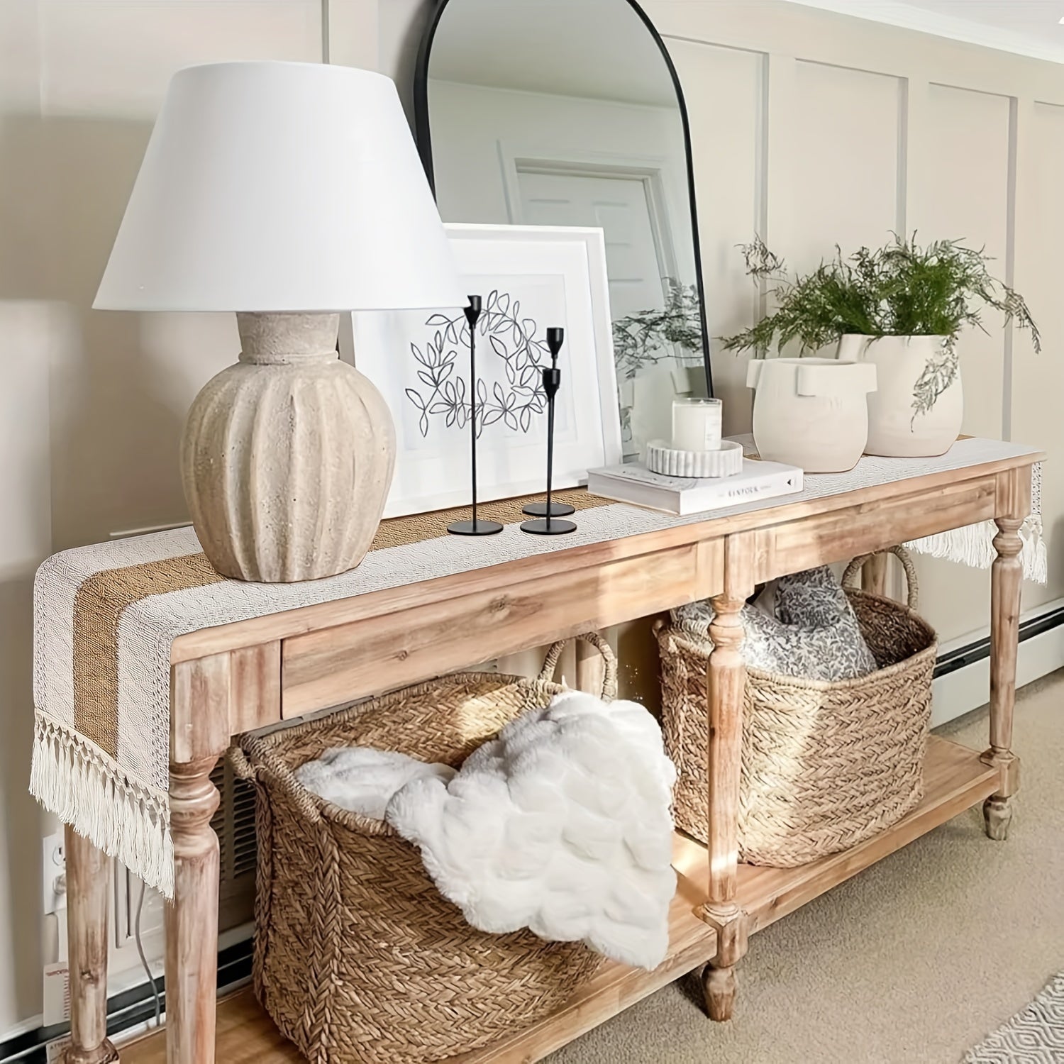 Linen Bohemian Chic Table Runner with Tassels for Weddings Dining and Home Decor