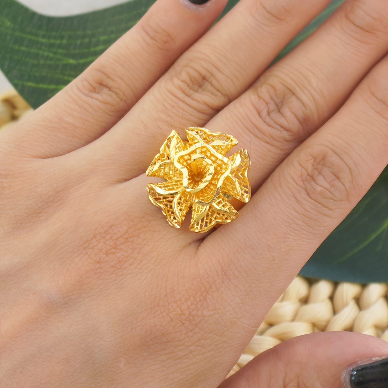 Gold Plated Copper Flower Jewelry Set for Women Wedding Bridal Gift