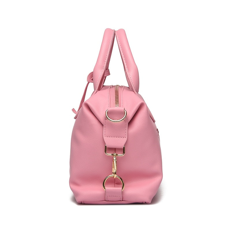 Synthetic Leather Tote Bag with Zipper Closure and Edge Paint in Black Pink Khaki Orange Light Brown