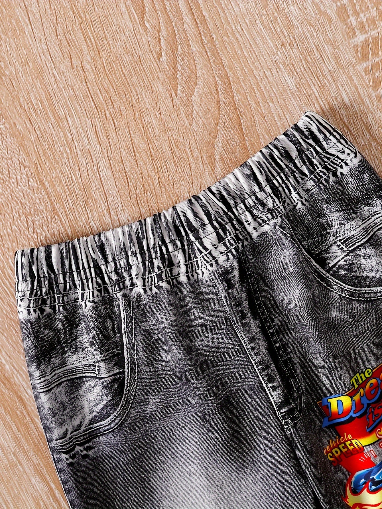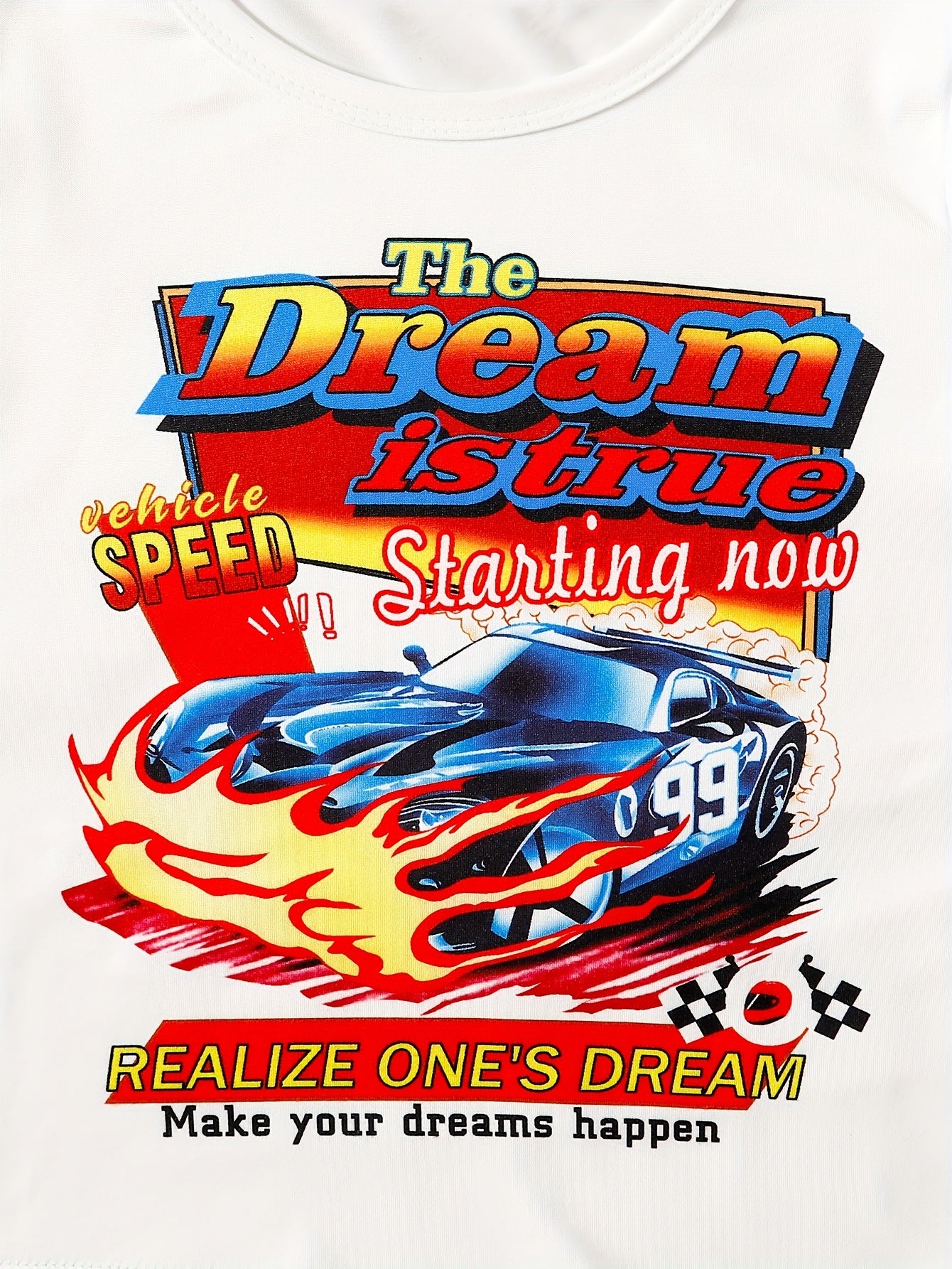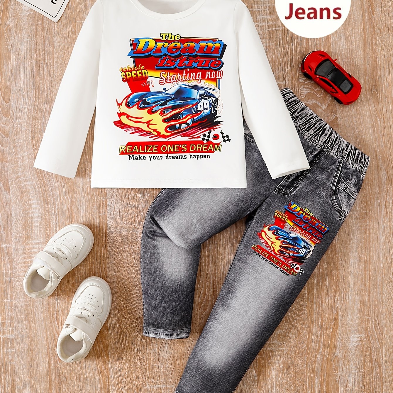 Boy's 2-Piece Race Car Pattern Casual Set for Spring and Fall with Long Sleeve Top and Pants