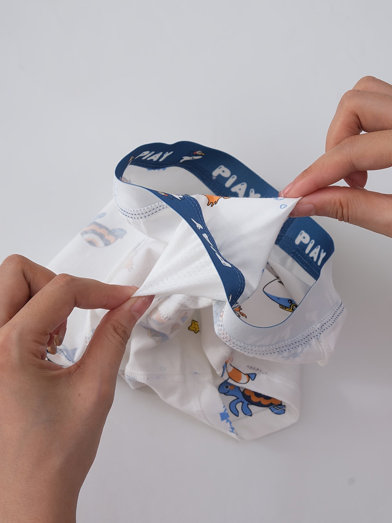 Boys' 4-Pack Underwater World Cartoon Boxer Briefs Soft Breathable Cotton Fit for Over 3 Years