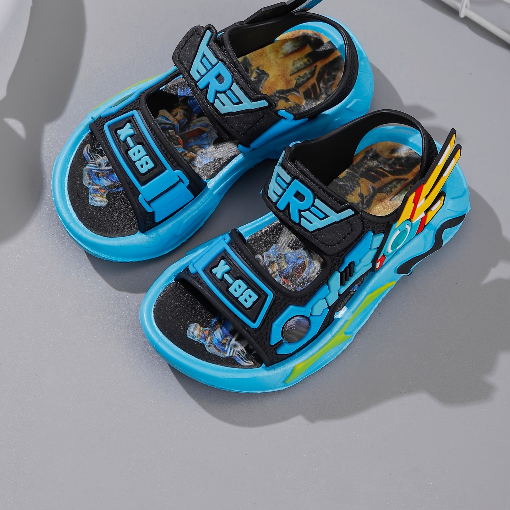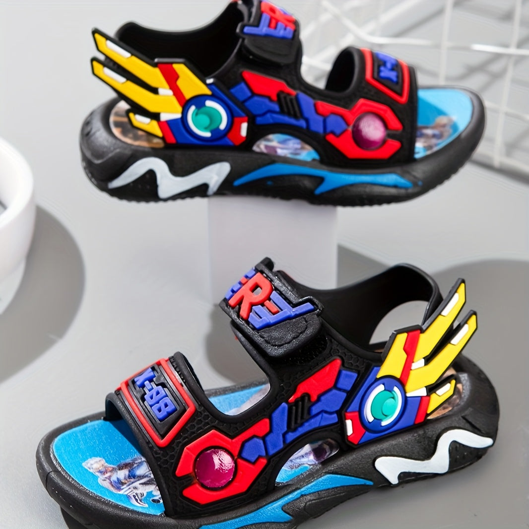 Boys' Cartoon Mecha Sandals for Children 14 and Under PVC Low Top Adjustable Closure