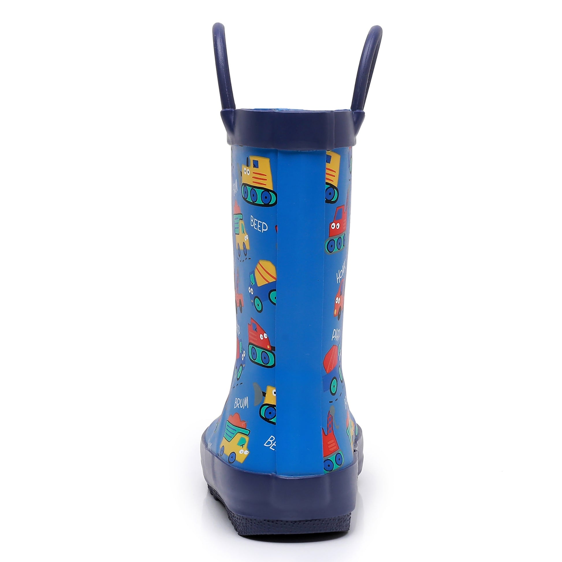 Boys Waterproof Cartoon Car Slip-On Rain Boots All-Season Non-Slip Wellies