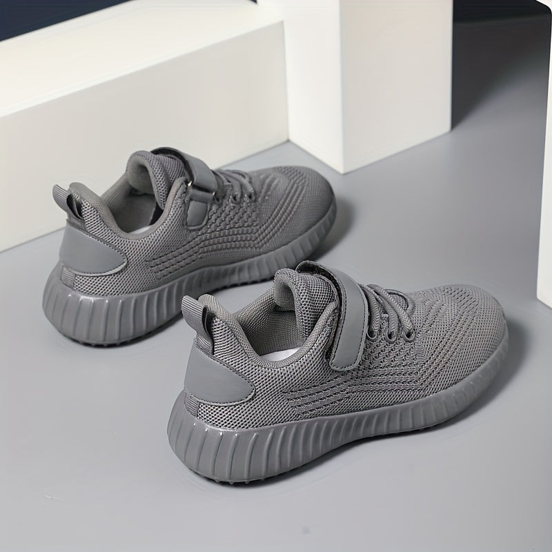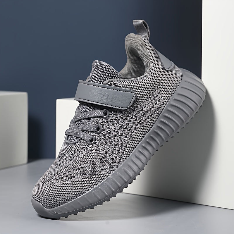 Boys Breathable Knit Running Shoes Low Top with Hook and Loop Fastener for Outdoor Jogging