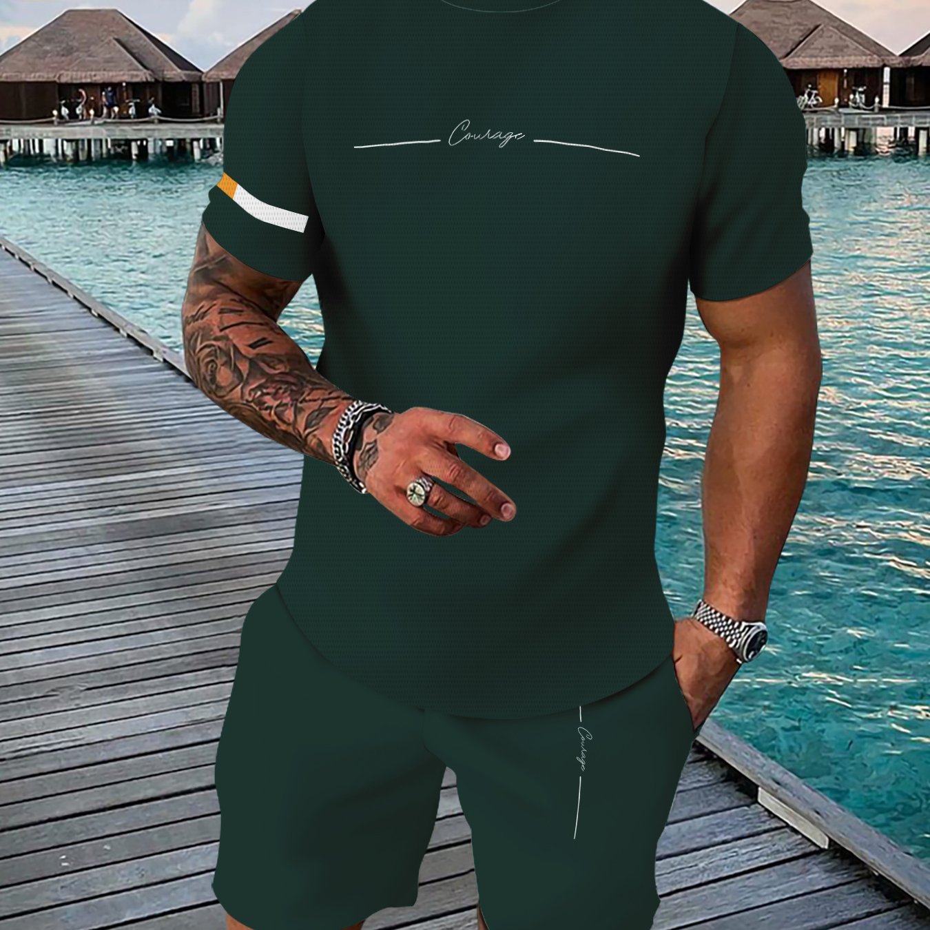 Men's Summer Casual T-Shirt and Pants Set with 3D Printing Breathable Polyester
