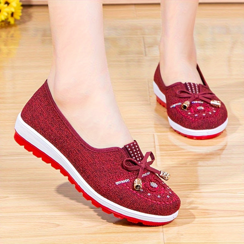 Women's Slip-On Shoes with Rubber Soles, Breathable Fabric, Non-Slip Comfort